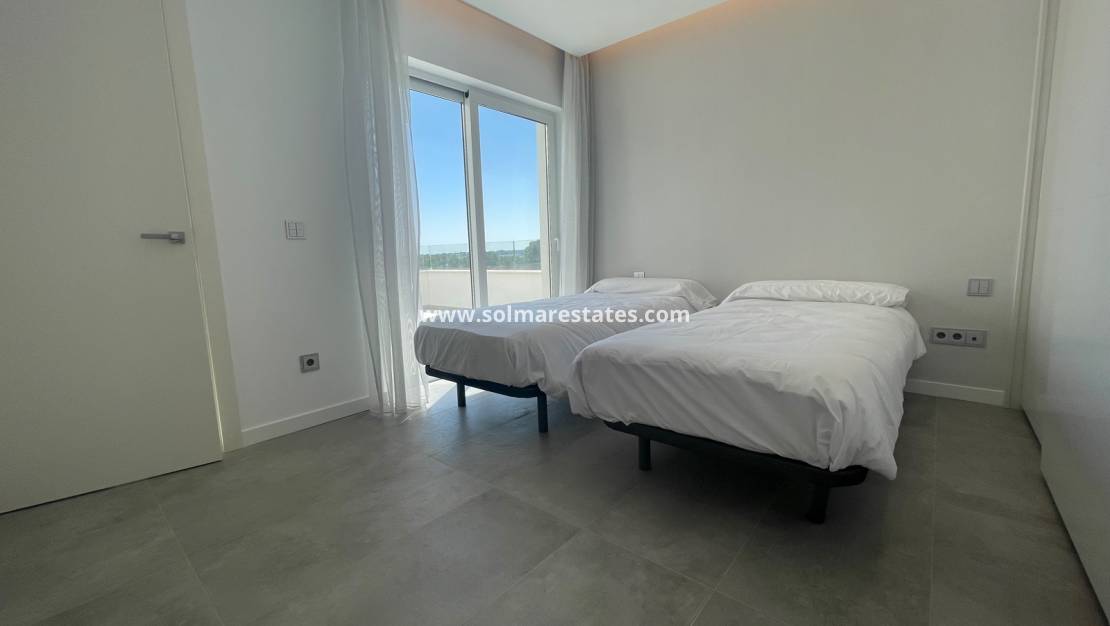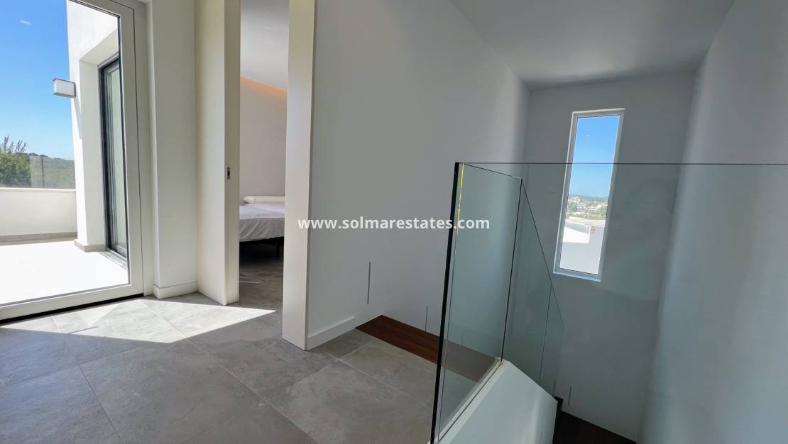 Au premier étage, vous trouverez deux chambres et une salle de bain. Chaque chambre donne accès aux terrasses de l'étage. Les villas Triguero disposent de leur propre grande piscine à débordement privée. Elles font 128 m² et leur terrain s'étend sur 580 m². Cette villa dispose également d'une cave (non aménagée) et d'un parking privé.