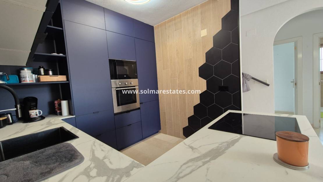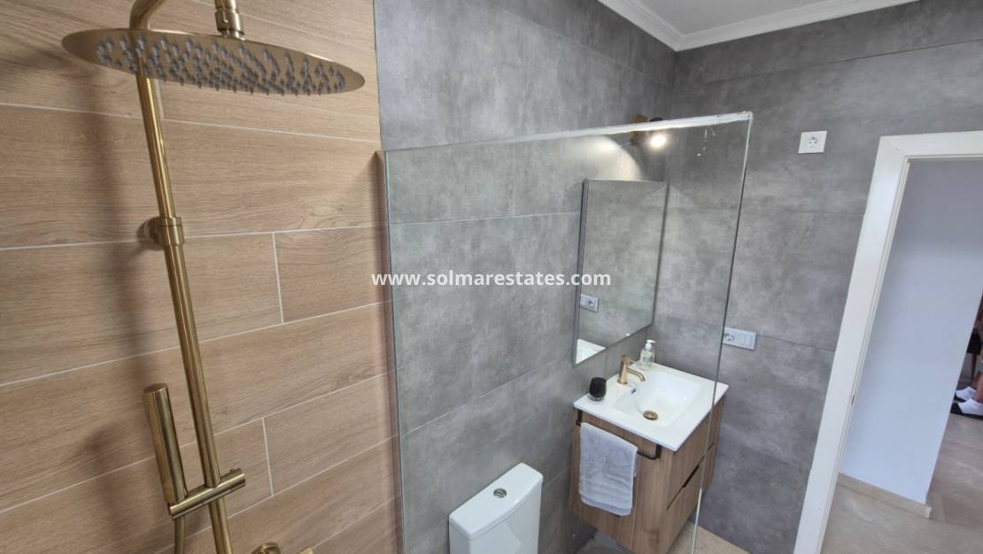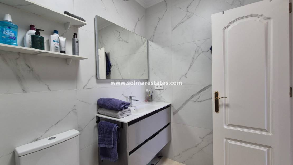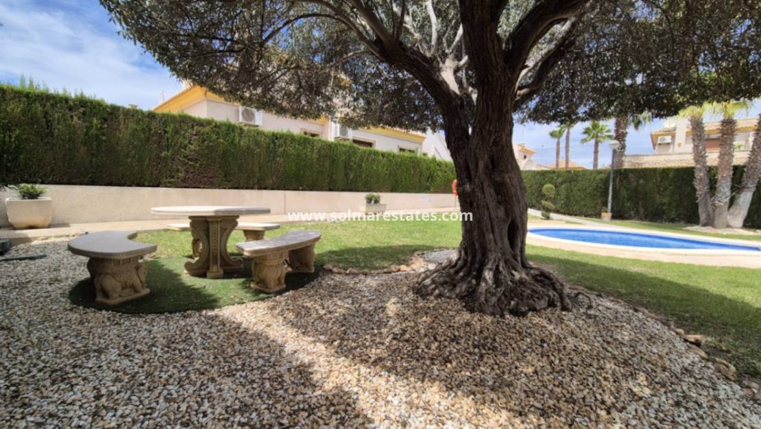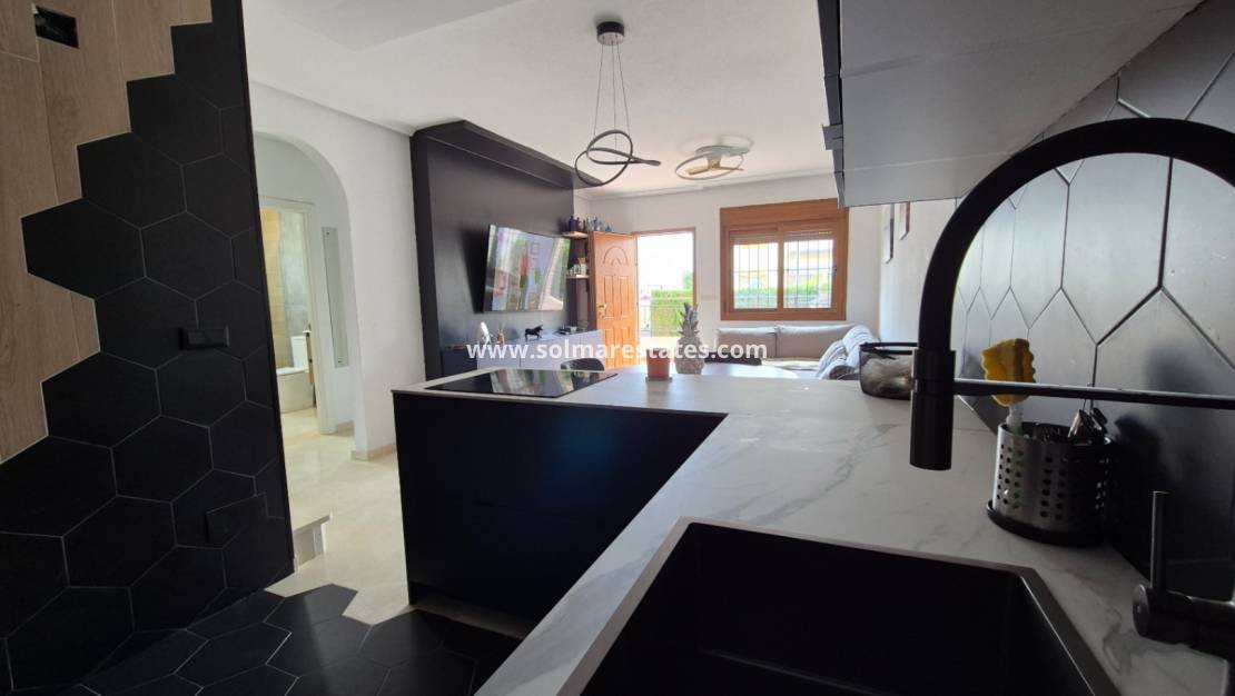 La propriété bénéficie de deux salles de bains entièrement rénovées, idéalement situées à chaque étage, et de trois chambres spacieuses baignées de lumière naturelle. À l'extérieur, profitez d'un jardin privé et de plusieurs terrasses, idéales pour les repas en plein air ou les bains de soleil. Située dans une rue calme avec un accès facile aux commodités locales, aux terrains de golf et à la place animée de Villamartin, cette maison est idéale pour vivre toute l'année ou pour une escapade de vacances.