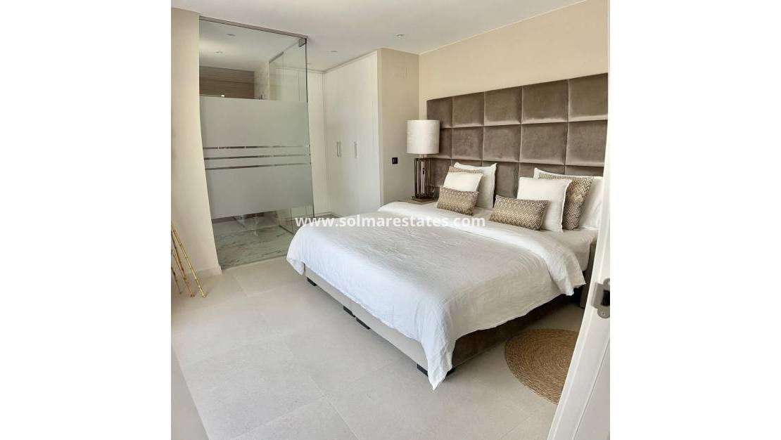chauffage au sol dans les salles de bains, carrelage de luxe, solarium spacieux avec de superbes vues sur les montagnes et la côte, cuisine de luxe avec équipement Bosch et lave-vaisselle et plans de travail de luxe,