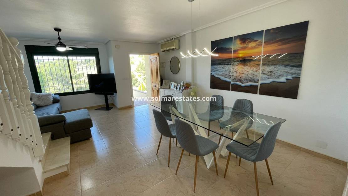 Cette propriété est située à quelques pas du centre commercial de La Fuente, où vous trouverez de nombreux bars, boutiques, restaurants, supermarchés et un arrêt de bus. Les plages dorées de Campoamor et Cabo Roig sont à quelques minutes en voiture, tout comme trois autres parcours de golf. L'aéroport d'Alicante est à 55 minutes de route.