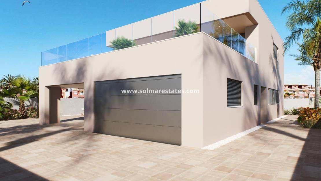 VILLA NEUVE A TORRE DE LA HORADADA Villa moderne de construction neuve près de la plage de Higuericas à Torre de la Horadada. La villa se compose d'un terrain de 618 m², avec 344 m² construits. La villa dispose de 5 chambres à coucher : deux d'entre elles avec salle de bain complète et dressing. Cuisine meublée avec des matériaux de première qualité à choisir par le propriétaire, y compris les appareils électriques, suivant un concept ouvert avec la salle à manger entourée de grandes fenêtres qui fournissent tout au long de la journée une lumière agréable et un accès direct à la piscine et les zones de jardin privé complètement fini. Climatisation (chaud/froid) par gaines incluse. En soignant les moindres détails des finitions, en utilisant des matériaux de la plus haute qualité, en personnalisant le design et le luxe sans oublier le confort maximum, nous obtenons la jouissance d'un logement aussi bien en été que dans la douceur de l'hiver, le rendant habitable tout au long de l'année. En plus d'un garage couvert pour 2 véhicules et d'un parking pour une autre voiture. Villa située à 100 m de la plage de Higuericas, à Torre de la Horadada, un paradis à tous points de vue, où vous pourrez profiter de l'immensité de la mer Méditerranée, de la promenade, des baignades rafraîchissantes dans la mer, des sports nautiques, de la voile, du surf, de la plongée avec tuba et à seulement 8 km du golf Lo Romero, l'un des 21 terrains de golf de la Costa Blanca. À 5 minutes du port de plaisance de La Torre de la Horadada et à 10 minutes des ports de plaisance de San Pedro del Pinatar, et des meilleurs restaurants où vous pourrez déguster la meilleure cuisine méditerranéenne. Sans oublier la proximité de l'autoroute AP7 qui relie notre résidence à deux aéroports aux destinations internationales, à 44 km de Corvera et à 75 km d'El Altet, Alicante. La ville la plus proche de la zone où se trouve le développement est Pilar de la Horadada, à 1 km, une ville tranquille avec toutes sortes de services, écoles, centres de santé, police, pharmacies, etc. Il y a également deux zones commerciales à proximité, le centre commercial Dos Mares à San Javier, à 5 minutes en voiture, et le boulevard La Zenia à Orihuela Costa, à 15 minutes en voiture.