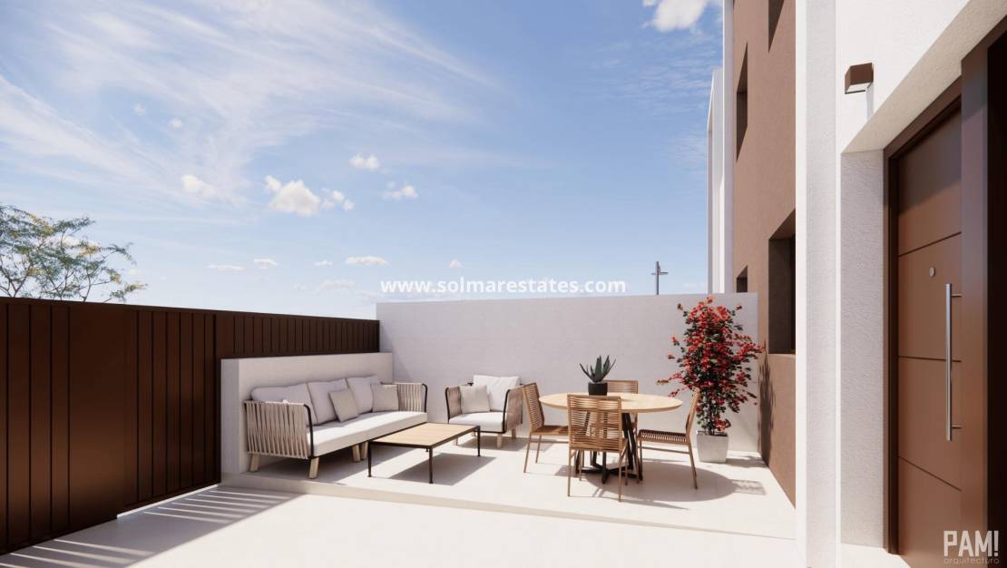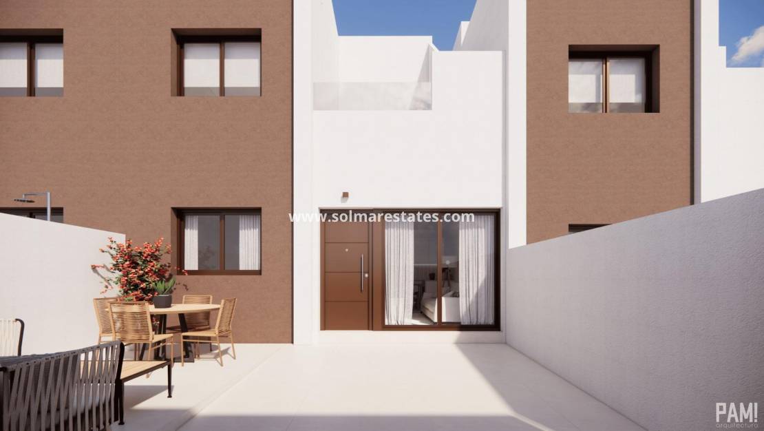 Villas modernes neuves avec piscine privée en option à Pilar de la Horadada Lotissement exclusif de 4 maisons contemporaines Cette collection limitée de quatre villas jumelées et mitoyennes récemment construites est située dans un quartier paisible de Pilar de la Horadada, à quelques minutes du centre-ville et à 3 km des plages de la Méditerranée. Conçues dans un souci de confort, de style et d'efficacité énergétique, chaque maison offre un espace de vie spacieux avec la possibilité d'ajouter une piscine privée et un parking sur le terrain. Design élégant et vie en plein air Chaque villa comprend trois chambres et deux salles de bains complètes, judicieusement réparties dans un intérieur lumineux et ouvert. Un jardin privé et un grand solarium sur le toit avec pré-installation pour une cuisine extérieure offrent des espaces parfaits pour profiter du soleil de la Costa Blanca tout au long de l'année. La piscine privée en option ajoute un niveau de confort supplémentaire pour se détendre ou recevoir. Caractéristiques et finitions de haute qualité Les maisons sont équipées de matériaux et de finitions modernes pour garantir une qualité et un confort durables : Porte d'entrée blindée pour plus de sécurité Menuiserie extérieure en PVC avec rupture de pont thermique pour une meilleure isolation Salles de bains entièrement équipées avec pare-douche Chauffage au sol dans les salles de bains pour plus de confort Système aérothermique pour l'eau chaude sanitaire Climatisation préinstallée dans toute la maison Vivez à Pilar de la Horadada : une ville pleine de charme Pilar de la Horadada est une ville espagnole traditionnelle connue pour son atmosphère conviviale et ses excellentes infrastructures. La ville offre tout ce dont vous avez besoin pour la vie quotidienne, notamment des supermarchés, des restaurants, des boutiques et de charmantes places. Une courte promenade vous mènera au centre animé, où vous pourrez déguster des tapas locales, assister à des événements culturels et profiter des marchés hebdomadaires. Proche des plages, du golf et des services Plages de Torre de la Horadada et Mil Palmeras : 3 km (5 minutes) Centre commercial La Zenia Boulevard : 15 km (15 minutes) Lo Romero Golf : 7 km (10 minutes) Aéroport de Corvera Murcia : 40 km (40 minutes) Aéroport international d'Alicante : 55 km (55 minutes) Sécurisez dès maintenant votre propriété sur la Costa Blanca Que vous recherchiez une résidence principale, une maison de vacances ou un bien d'investissement, ces nouvelles maisons à Pilar de la Horadada offrent un emplacement imbattable, des équipements modernes et un style de vie méditerranéen. Contactez-nous dès aujourd'hui pour plus de détails ou pour planifier votre visite.