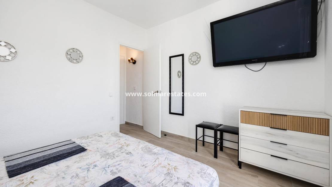 Ce charmant duplex situé à Torretas III, à Torrevieja, offre une surface habitable de 57 m², agréablement agencée. Avec ses deux chambres, il est idéal pour les couples ou les petites familles. Le spacieux et lumineux salon-salle à manger communique avec une cuisine moderne entièrement équipée. Il dispose également de deux salles de bains, dont une complète, et de placards intégrés dans les chambres pour plus de confort.