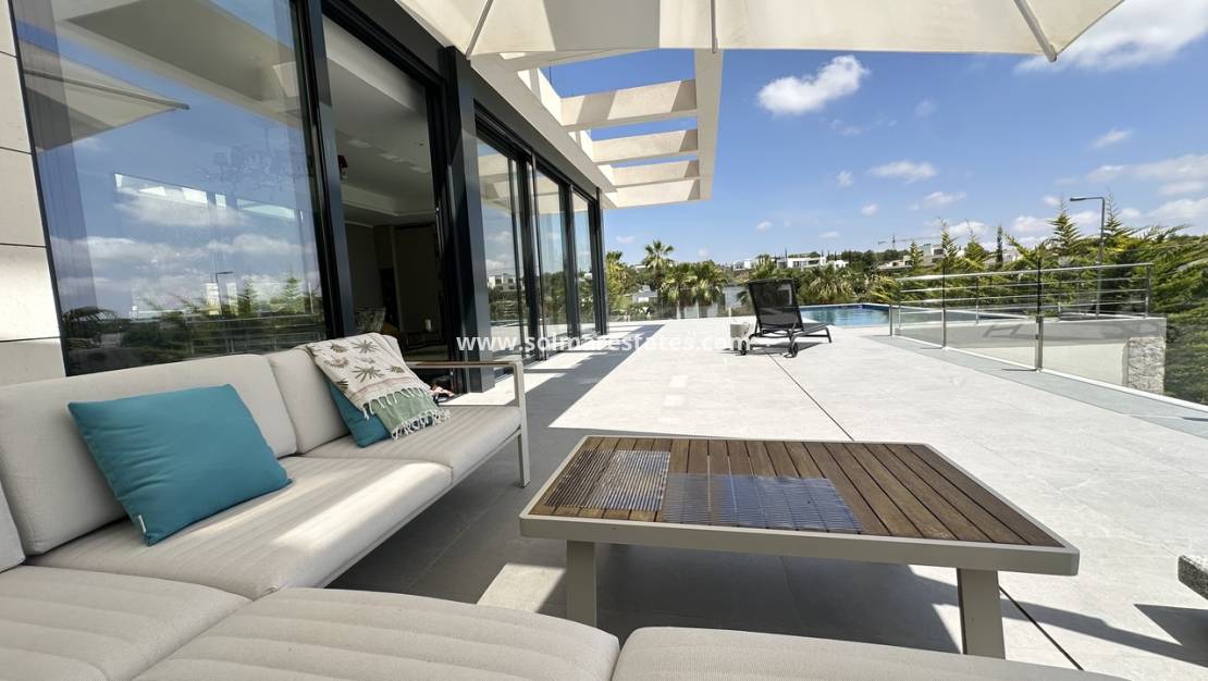 Située sur un terrain privé offrant une vue imprenable sur le golf, cette villa dispose de 6 chambres spacieuses, de 4 salles de bain complètes et de toilettes supplémentaires, idéales pour les familles nombreuses ou pour recevoir des invités. Son architecture moderne et épurée est agrémentée de finitions haut de gamme et de matériaux naturels.