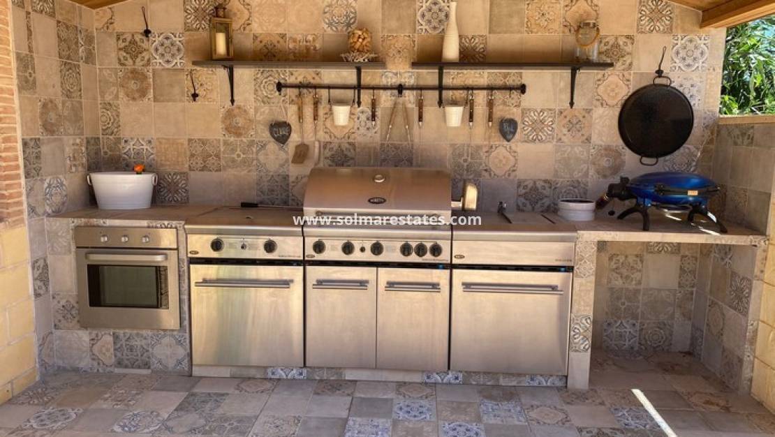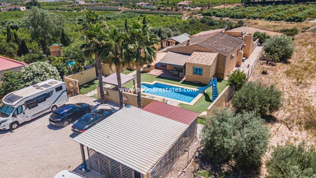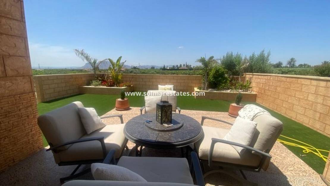 Cette impressionnante villa de campagne est située dans la paisible campagne d'Albatera, entourée de magnifiques orangeraies et citronniers. À seulement 3,5 km du centre-ville, elle offre un équilibre idéal entre tranquillité et accès facile aux commodités du quotidien.