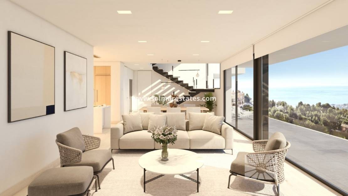 VILLA DE LUXE AVEC VUE IMPRENABLE SUR LA MER Sur la Sierra de Altea, avec une vue imprenable sur la mer, nous tombons sur cette toute nouvelle villa de style minimaliste, avec la meilleure qualité et un design parfait. La villa est répartie sur 3 étages, le dernier étage dispose d'un garage pour deux voitures et d'un hall d'entrée qui nous permet d'accéder au reste de la propriété. À l'étage du milieu, il y a trois des quatre chambres de cette maison, deux chambres principales et deux chambres supplémentaires. La chambre principale située à cet étage a la position idéale pour profiter de la vue magnifique sur la mer, elle a accès à une terrasse privée et elle dispose d'une salle de bains privative ainsi que d'un dressing. Les deux autres chambres ont également chacune leur propre salle de bains, de grandes armoires et elles partagent une terrasse. Il y a aussi des placards supplémentaires dans le couloir qui mène aux chambres. Le rez-de-chaussée est réparti en deux zones, séparées par un hall et la cage d'escalier. D'un côté se trouve la quatrième chambre avec sa salle de bain attenante, son dressing et son accès à la terrasse principale avec un porche. L'autre côté est l'endroit où vous pouvez trouver des toilettes invités, une cuisine ouverte sur la salle à manger, avec un îlot central, sur cet îlot central se trouve le coin cuisine et un endroit charmant pour prendre le petit-déjeuner, la salle à manger avec accès direct à le porche et un salon lumineux. Trois espaces ouverts, resplendissants de lumière naturelle de la Méditerranée et, plus important encore, connectés à l'extérieur de la propriété, avec plusieurs porches, des toilettes extérieures pour les invités, une grande terrasse et une piscine. La piscine a un côté infini pour que vous ne manquiez pas la vue sur la mer une seule seconde. La villa est équipée d'un ascenseur, d'un système de sécurité, du chauffage au sol, de la climatisation, d'un éclairage technique et de jardins. Design, agencements et équipements, qualité et vue magnifique sur la mer résument cette villa qui vous attend à Altea, au nord de la Costa Blanca.