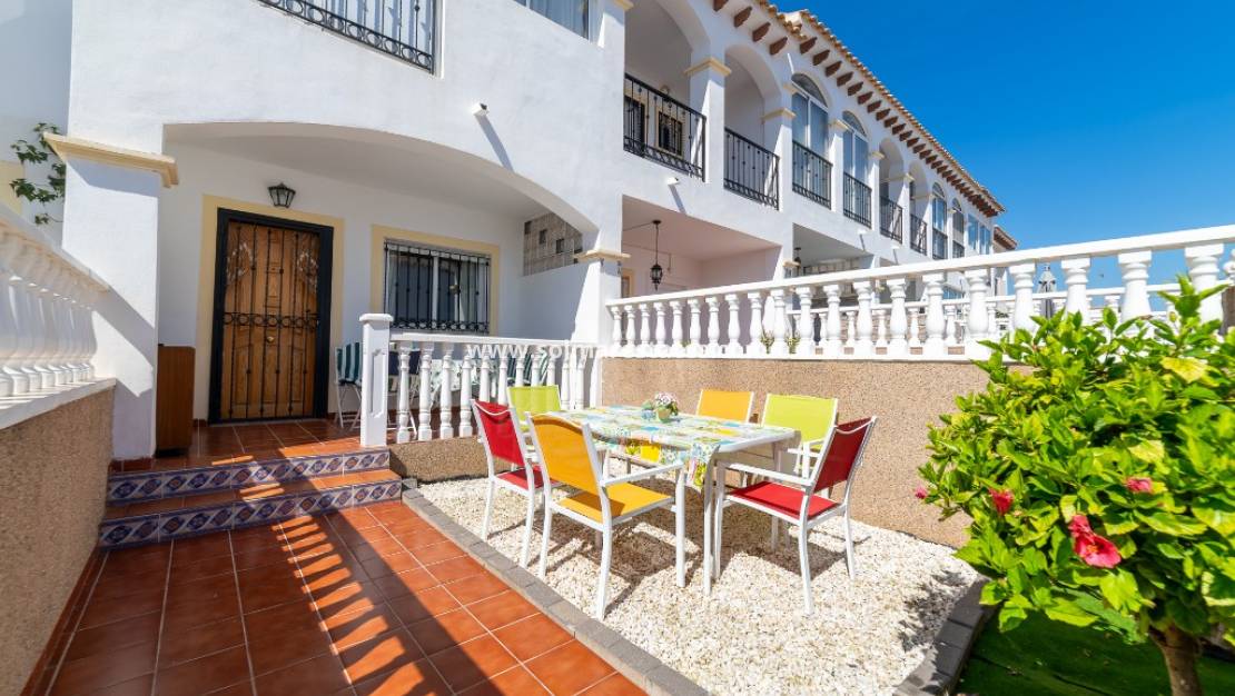 Nous sommes heureux d'offrir cette charmante maison de ville située dans la très recherchée communauté fermée de La Cinuelica R10 , à quelques pas des plages d'Orihuela Costa.