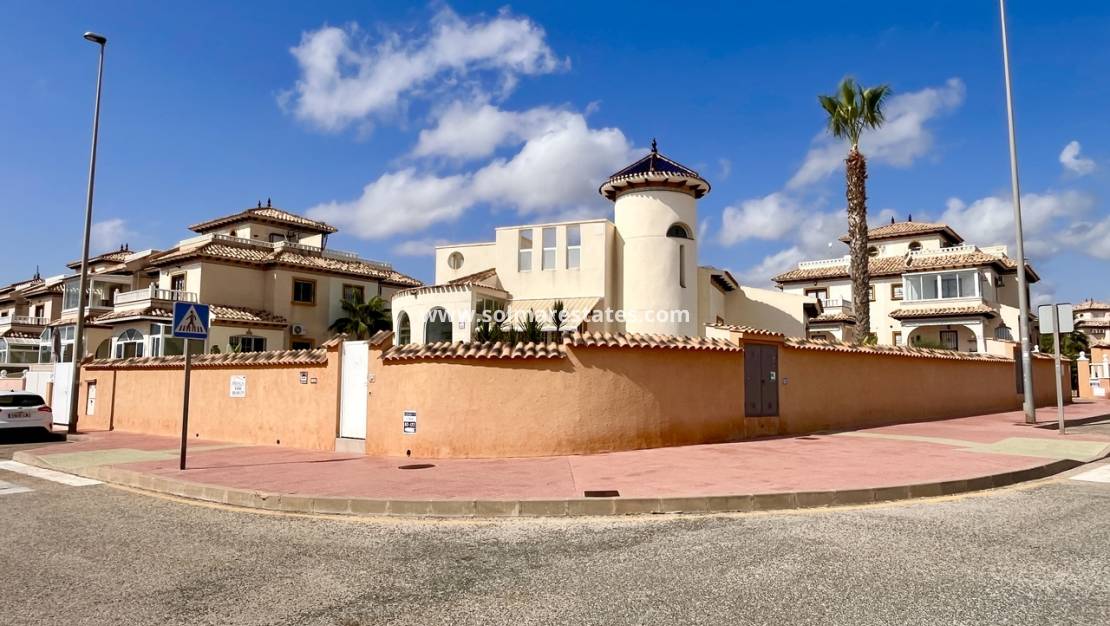 Cette villa côtière moderne et ensoleillée est située dans le quartier prisé de Lomas de Cabo Roig, offrant un parfait équilibre entre confort, style et emplacement. Implantée sur un généreux terrain d'angle de 411 m², cette maison magnifiquement rénovée comprend deux chambres, deux salles de bains élégantes et un solarium privé sur le toit avec vue imprenable sur la mer, idéal pour profiter du soleil méditerranéen.