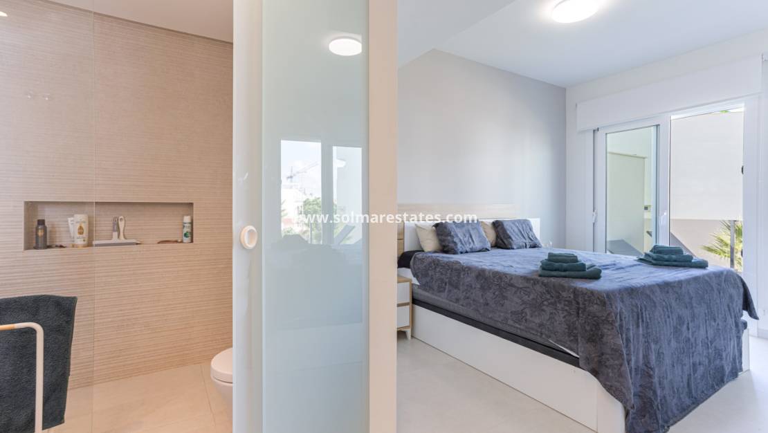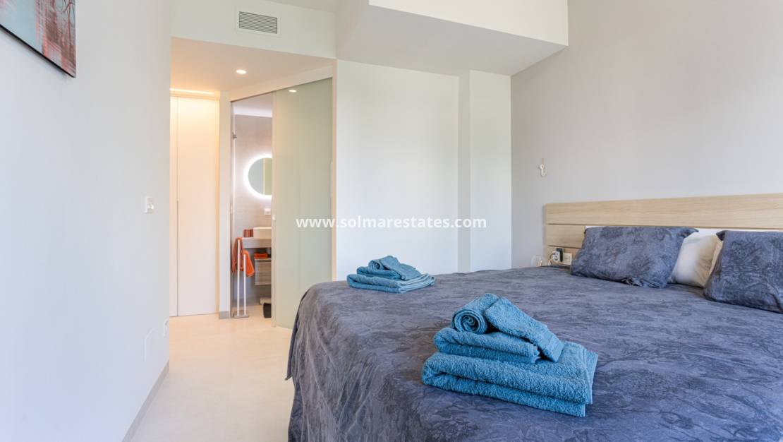 La cuisine ouverte , entièrement équipée d'appareils électroménagers modernes, s'intègre harmonieusement au vaste espace salon-salle à manger, idéal pour recevoir ou se détendre. De grandes portes coulissantes s'ouvrent sur une terrasse privée exposée sud-ouest avec vue sur la piscine, où vous pourrez vous détendre et profiter du climat chaud de la Costa Blanca toute l'année.