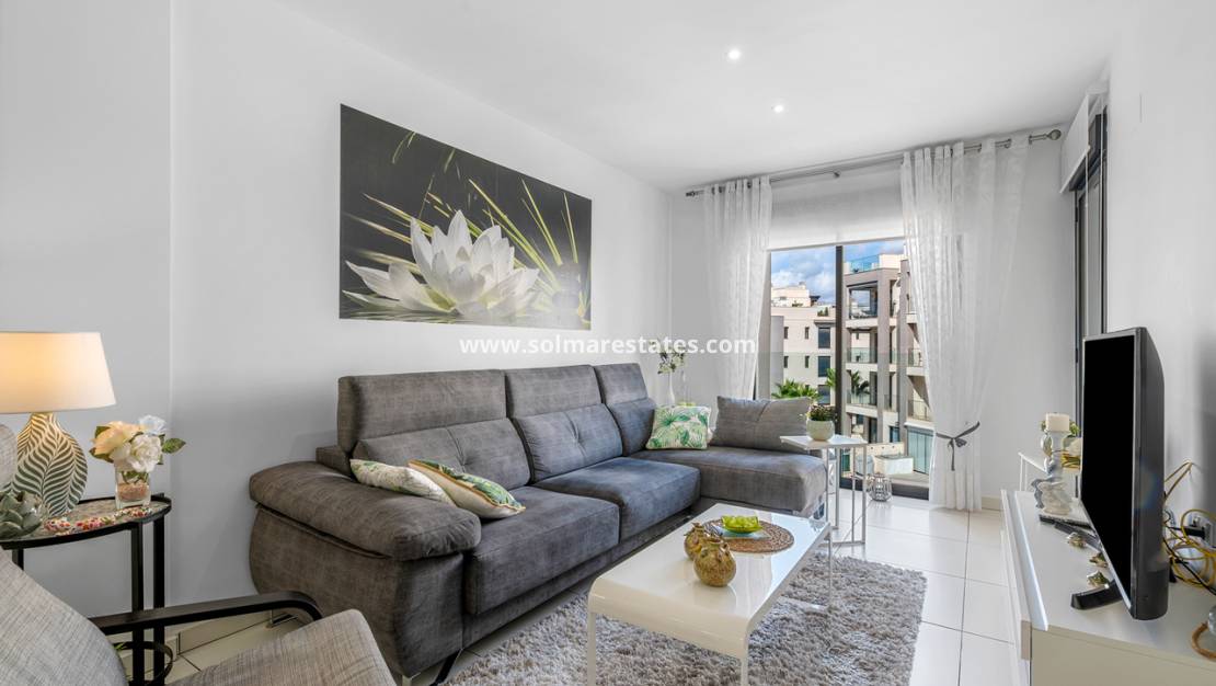 L'appartement est vendu entièrement meublé et comprend un spacieux séjour/salle à manger, une cuisine ouverte moderne entièrement équipée et la climatisation. La chambre principale comprend des placards et une salle de bains attenante, tandis que la deuxième chambre dispose également de placards et d'un accès à une seconde salle de bains avec douche à l'italienne.