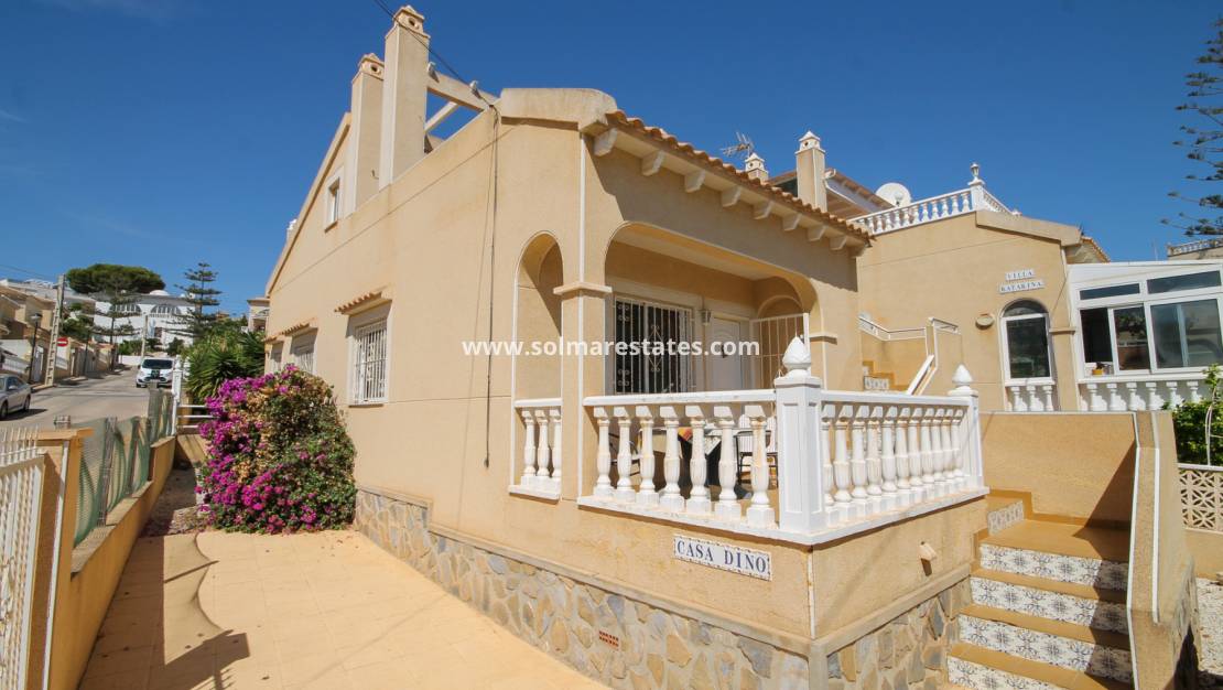 À l'extérieur, le jardin facile d'entretien dispose d'une terrasse avec un parking hors voirie . La villa est idéalement située à quelques pas de toutes les commodités , à quelques pas d' un parc paysager et à seulement 10 minutes en voiture des magnifiques plages d'Orihuela Costa .
