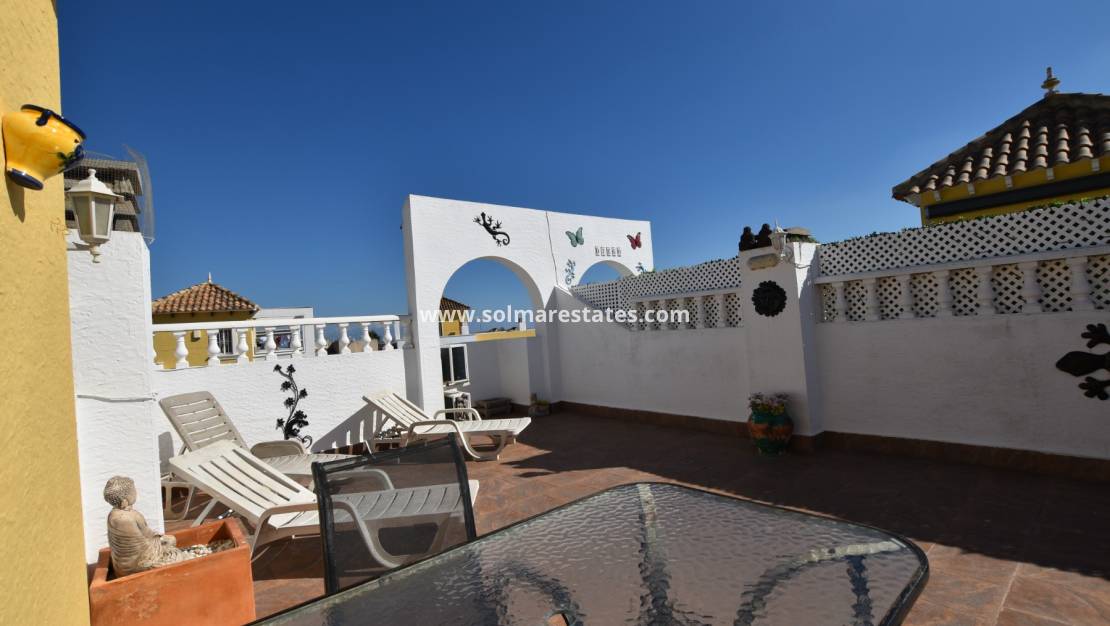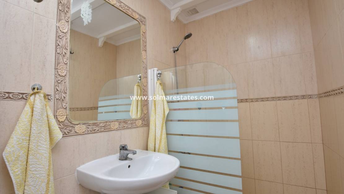 La propriété dispose d'un salon et salle à manger lumineux avec climatisation, de deux chambres avec rangements, d'une salle de bain et d'un intérieur entièrement meublé prêt à emménager. Les avantages supplémentaires comprennent un parking hors route, une piscine commune et un grand solarium privé avec vue dégagée.