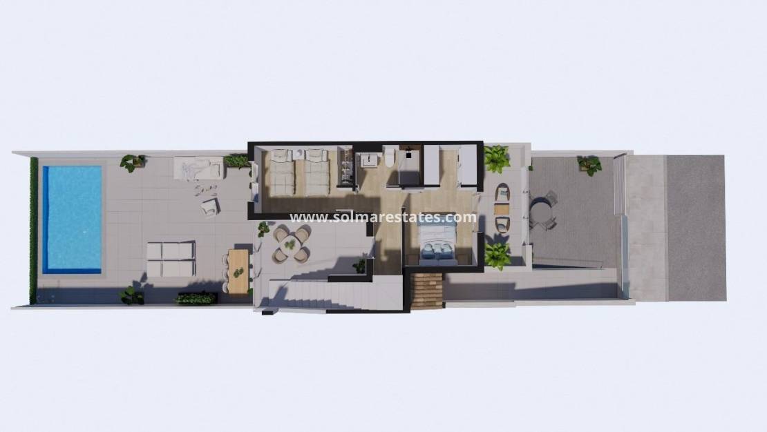 Maisons mitoyennes neuves en première ligne du golf La Serena à Los Alcázares Emplacement privilégié près du golf et de la mer Découvrez un lotissement résidentiel exclusif de 31 maisons mitoyennes neuves situées en première ligne du golf La Serena à Los Alcázares, à seulement 600 m de la Mar Menor. Situé au cœur de la Costa Cálida, cet emplacement privilégié combine golf, plage et style de vie méditerranéen. Avec toutes les commodités à proximité et un excellent accès routier, c'est l'endroit idéal pour les vacances et pour y vivre toute l'année. Maisons modernes avec piscine privée et solarium sur le toit Chaque maison présente un design contemporain élégant et des espaces intérieurs lumineux. Les maisons sont réparties sur trois niveaux plus un solarium sur le toit, offrant un maximum de confort et d'intimité : Sous-sol avec garage privé pour 2 voitures et accès à un patio Rez-de-chaussée avec salon et cuisine ouverts donnant sur un jardin et une piscine privée, 1 chambre et 1 salle de bains Premier étage avec 2 chambres, 1 salle de bains et 2 terrasses Solarium sur le toit avec cuisine d'été, idéal pour se détendre et profiter d'une vue panoramique L'orientation est et ouest garantit un excellent éclairage naturel et une vie en plein air tout au long de la journée. Finitions de haute qualité et confort Ces maisons sont construites selon les normes les plus élevées et offrent des caractéristiques haut de gamme, notamment : Piscine privée Garage en sous-sol pour 2 voitures avec porte motorisée Système d'eau chaude aérothermique Climatisation gainable entièrement installée Cuisine meublée et équipée Salles de bains entièrement équipées avec meubles, miroirs et parois de douche Porte d'entrée sécurisée Vivez entre la mer et le fairway Nichée au cœur d'un paysage méditerranéen luxuriant, cette communauté exclusive offre une vie paisible à proximité du parcours de golf Serena, un parcours 18 trous réputé, entouré par la nature et des lacs tranquilles. Les eaux chaudes et peu profondes de la Mar Menor sont parfaites pour la baignade et la pratique de sports nautiques tels que la voile, le paddle surf et le kayak tout au long de l'année. Distances clés : Plage (Mar Menor) : 600 m La Serena Golf : à côté du complexe Centre de Los Alcázares : 2 km Carthagène : 22 km Ville de Murcie : 40 km Aéroport de Murcie : 30 km Aéroport d'Alicante : 90 km Assurez-vous un style de vie méditerranéen Que vous recherchiez une résidence permanente, une maison de vacances ou un investissement rentable, ces maisons offrent luxe, confort et un style de vie côtier de qualité supérieure. Contactez-nous dès aujourd'hui pour organiser une visite et vous assurer votre nouvelle maison à Los Alcázares.