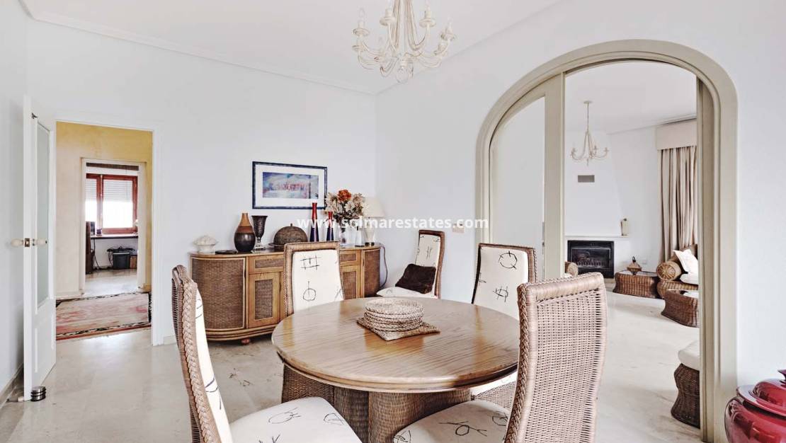 Spacieuse villa individuelle de 4 chambres et 3 salles de bains, située sur un terrain généreux de 974 m² avec piscine privée, dans une impasse tranquille du village prisé de Pinar de Campoverde. En bordure du Parc Naturel de Rio Seco, cette maison familiale magnifiquement entretenue se trouve à seulement 10 km des plages Pavillon Bleu de Torre de la Horadada et Mil Palmeras.