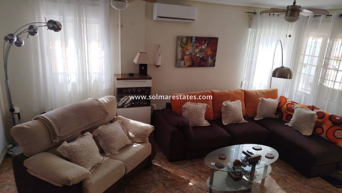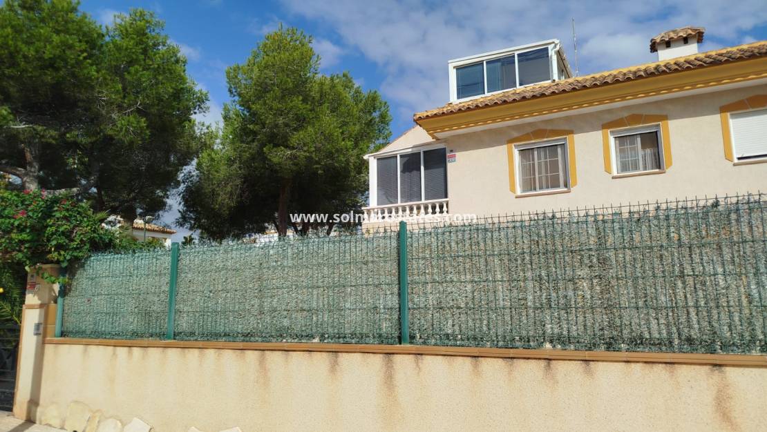 Cette maison mitoyenne de 3 chambres et 2 salles de bains, magnifiquement présentée et orientée plein sud, est parfaitement située dans une impasse tranquille du quartier très prisé de Los Dolses, à Orihuela Costa.