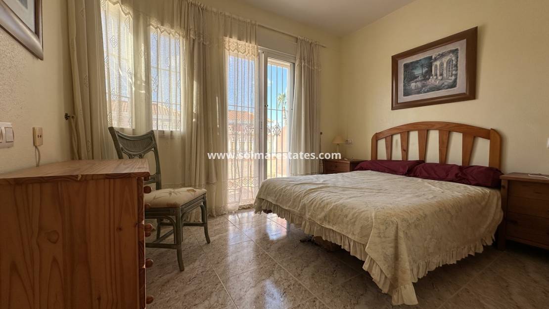 Maison mitoyenne de 2 chambres et 1,5 salle de bain, orientée sud-ouest, à vendre à quelques minutes seulement de la rue principale et de la plage de Cabo Roig.