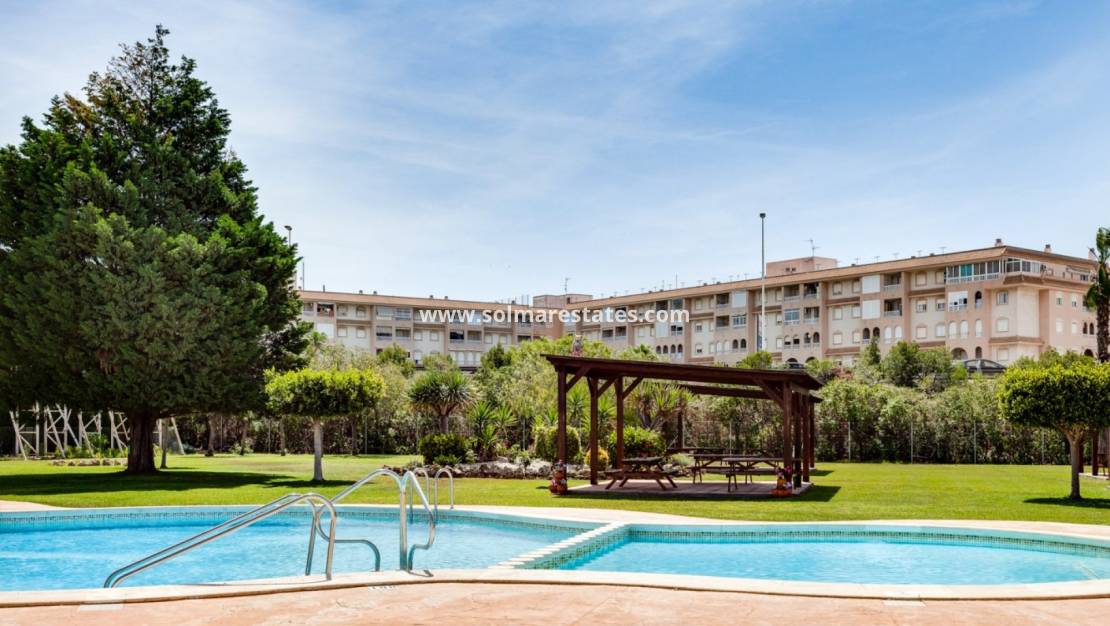 Cet appartement au dernier étage offre une opportunité fantastique dans le populaire Urb. Parque de las Naciones à Torrevieja, avec une terrasse privée sur le toit et une grande terrasse avant orientée à l' est donnant sur la piscine commune .