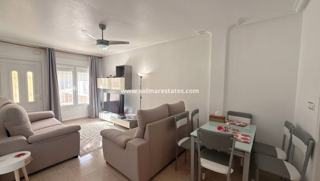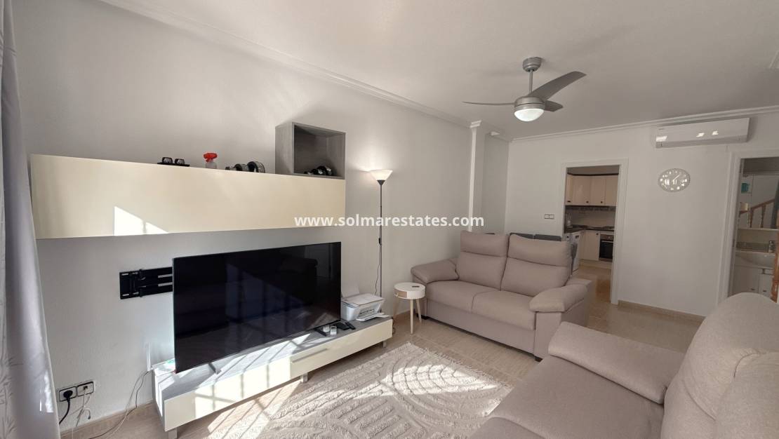 Cette maison de ville orientée plein sud se situe dans le charmant complexe Vista Mar , doté d'une superbe piscine commune et de jardins paysagers , à seulement 400 mètres de la promenade de Cabo Roig . Profitez d'un accès facile à la plage Pavillon Bleu, au port de plaisance, aux bars, aux restaurants et aux commerces de proximité .