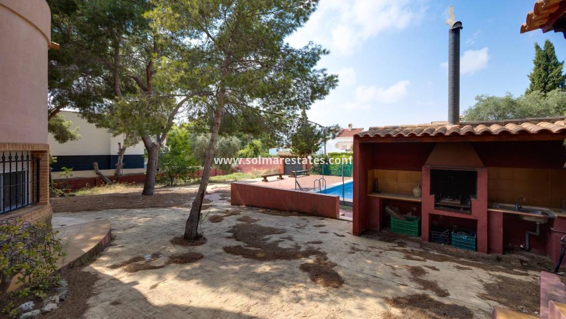 Le vaste jardin est magnifiquement aménagé avec des arbres matures qui offrent une ombre naturelle et une agréable sensation d'intimité. Les espaces extérieurs sont conçus pour le plaisir, avec un espace barbecue idéal pour les réunions de famille et entre amis, ainsi qu'une piscine privée parfaite pour se rafraîchir pendant les chauds mois d'été.