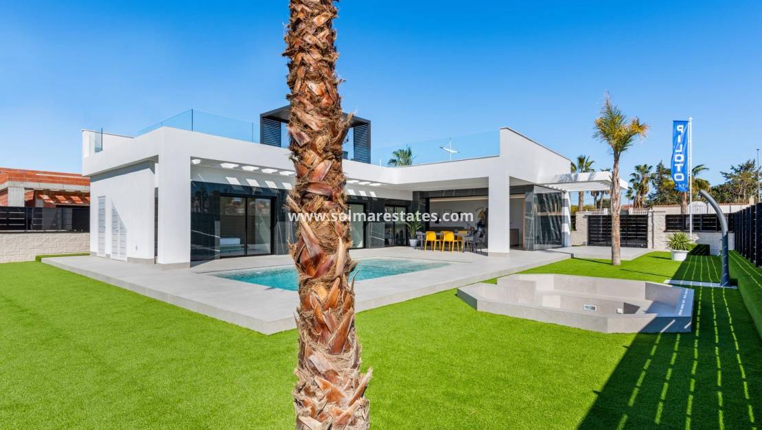 Villas de luxe neuves à La Finca Golf, Algorfa Villas exclusives de plain-pied à côté du Golf La Finca, sur la Costa Blanca Sud Découvrez ce projet résidentiel exclusif de 11 villas indépendantes situées dans le prestigieux complexe La Finca Golf Resort à Algorfa, l'une des zones les plus prisées de la Vega Baja, sur la Costa Blanca Sud. Entouré de paysages verdoyants, de vergers d'agrumes et de fairways vallonnés, cet emplacement offre tranquillité, intimité et un style de vie méditerranéen de grande qualité, tout en restant proche de tous les services essentiels et des attractions côtières. Villas modernes de plain-pied avec piscine privée et solarium Chaque villa est soigneusement conçue sur un seul niveau, offrant confort et fonctionnalité dans toutes les pièces. Les propriétés comprennent 3 chambres spacieuses et 2 salles de bains modernes, une cuisine américaine ouverte et un salon/salle à manger lumineux avec de grandes fenêtres qui s'ouvrent directement sur la terrasse et le jardin privé. À l'extérieur, chaque villa dispose d'une piscine privée, d'une place de parking dans la propriété et d'un impressionnant solarium privé de 150 m², idéal pour profiter du soleil toute l'année. Pour les acheteurs qui souhaitent disposer de plus d'espace, il est possible d'ajouter un sous-sol ou une quatrième chambre à l'étage supérieur, moyennant un coût supplémentaire, ce qui vous permet d'adapter la maison à vos besoins personnels. Spécifications de haute qualité et finitions élégantes Ces villas sont construites avec des matériaux et des finitions haut de gamme pour garantir confort, efficacité et style moderne. Elles comprennent notamment une porte d'entrée renforcée, des volets motorisés, des cuisines entièrement équipées avec des appareils électroménagers et des salles de bains complètes avec meubles, miroirs et parois de douche. Le solarium sur le toit est livré avec une cuisine d'été et une pergola, créant ainsi le cadre idéal pour les repas en plein air et la détente. Un ensemble d'éclairage LED intérieur et extérieur est également inclus, améliorant à la fois le design et l'ambiance. Emplacement privilégié dans le complexe La Finca Golf Resort La Finca Golf Resort est réputé pour son parcours de golf de championnat, son hôtel de luxe, ses installations de spa, ses restaurants et ses zones sportives, le tout dans un environnement sécurisé et bien entretenu. Algorfa est un charmant village espagnol offrant une atmosphère détendue, des magasins locaux et des restaurants traditionnels, tandis que les villes voisines offrent un éventail plus large de services. Distances clés Club de golf La Finca : sur place Plages de Guardamar del Segura : 15 km Centres commerciaux de Torrevieja et Orihuela Costa : 15 km Almoradi, Benijofar et Ciudad Quesada : 5 à 10 km Aéroport international d'Alicante : 35 km Mode de vie méditerranéen et investissement intelligent Avec plus de 300 jours de soleil par an, d'excellentes liaisons routières et la proximité des plages, des terrains de golf et des zones commerciales, ces villas sont idéales comme résidence permanente, maison de vacances ou opportunité d'investissement sur la Costa Blanca. Réservez dès aujourd'hui votre nouvelle villa à La Finca Golf Ne manquez pas l'occasion de devenir propriétaire d'une villa moderne dans l'un des complexes de golf les plus exclusifs d'Algorfa. Contactez-nous dès aujourd'hui pour obtenir plus d'informations ou organiser une visite privée.