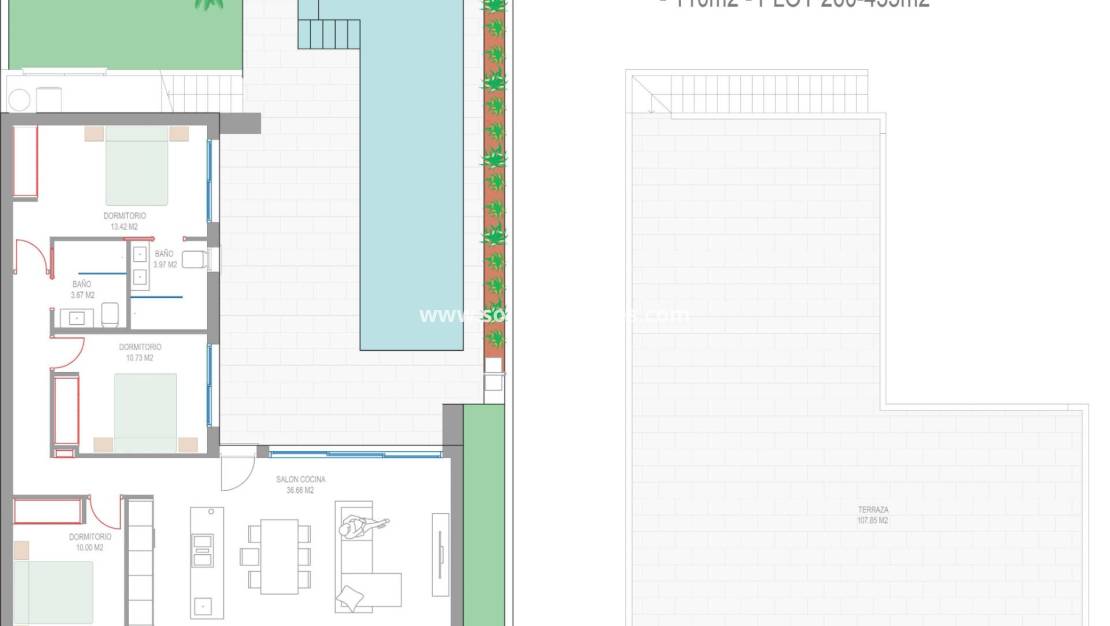 VILLAS NEUVES À SAN JAVIER Nouvelle construction résidentielle de villas à San Javier. Les villas sont construites sur un étage et se composent de 3 chambres à coucher, 2 salles de bains, cuisine ouverte, le salon avec des vues ouvertes sur la terrasse, le solarium, le jardin privé avec la piscine. La cuisine entièrement meublée en blanc brillant ou en bois comprend une plaque de cuisson à induction avec hotte intégrée, un four, un micro-ondes, un lave-linge, un réfrigérateur intégré et un lave-vaisselle intégré. Installation complète de l'air conditionné par des gaines. La piscine est pré-installée pour une pompe à chaleur. San Javier est proche de toutes les commodités avec un accès facile à la plage, aux sports nautiques, aux magasins et au réseau de transport. Ici, vous pouvez profiter de tous les équipements que San Javier a à offrir tels que les magasins locaux, les bars et les restaurants ainsi que la proximité des centres commerciaux, l'aéroport de Murcie et tous les beaux endroits à trouver le long de la Mar Menor. L'aéroport de Corvera/Murcia se trouve à 30 minutes et celui d'Alicante à 45 minutes.