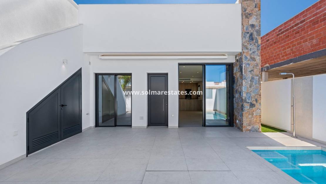 NOUVELLES CONSTRUCTIONS DE VILLAS JUMELÉES À SAN JAVIER Nouvelle construction résidentielle de villas indépendantes et jumelées à San Javier. Les villas sont construites sur un étage et se composent de 3 chambres à coucher, 2 salles de bains, cuisine ouverte, le salon avec des vues ouvertes sur la terrasse, le solarium, le jardin privé avec la piscine. La cuisine entièrement meublée en blanc brillant ou en bois comprend une plaque de cuisson à induction avec hotte intégrée, un four, un micro-ondes, un lave-linge, un réfrigérateur intégré et un lave-vaisselle intégré. Installation complète de l'air conditionné par des gaines. La piscine est pré-installée pour une pompe à chaleur. San Javier est proche de toutes les commodités avec un accès facile à la plage, aux sports nautiques, aux magasins et au réseau de transport. Ici, vous pouvez profiter de tous les équipements que San Javier a à offrir tels que les magasins locaux, les bars et les restaurants ainsi que la proximité des centres commerciaux, l'aéroport de Murcie et tous les beaux endroits à trouver le long de la Mar Menor. L'aéroport de Corvera/Murcia se trouve à 30 minutes et celui d'Alicante à 45 minutes.