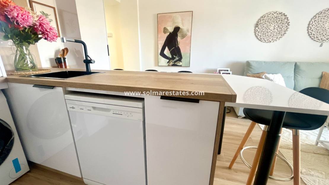 Ce superbe appartement de trois chambres, récemment rénové, se situe au sein de l'Edificio Nautilus II, l'un des complexes résidentiels les plus réputés de Punta Prima, à deux pas de la plage de Cala Piteras et du célèbre restaurant Nautilus. Son emplacement offre un cadre de vie idéal, alliant le charme de la mer et les commodités du quotidien, dans un quartier résidentiel prisé de la Costa Orihuela.