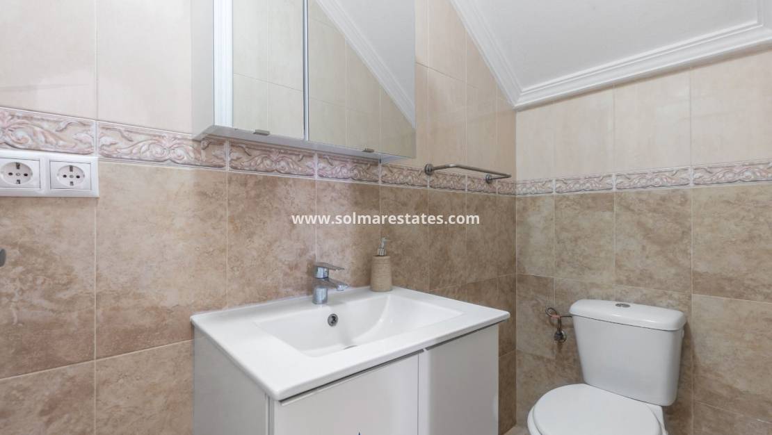 Cette charmante maison à quatre pièces située à Playa Golf, Lomas de Cabo Roig, représente une excellente opportunité pour y vivre à l'année ou un investissement rentable . Son orientation plein sud et sa grande terrasse avant en font un lieu idéal pour profiter du climat méditerranéen et créer un espace extérieur accueillant.
