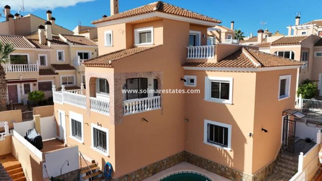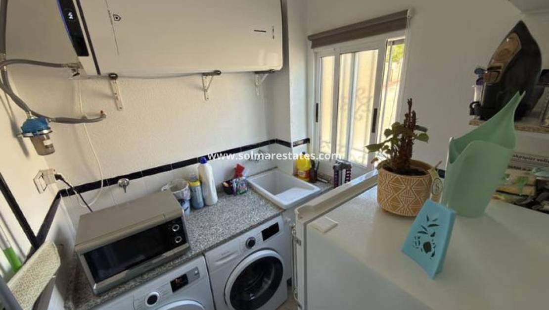 Cette villa combine des espaces de vie spacieux et modulables avec un emplacement privilégié à Villamartín , à proximité des commodités locales, des terrains de golf et des magnifiques plages de la Costa Blanca.