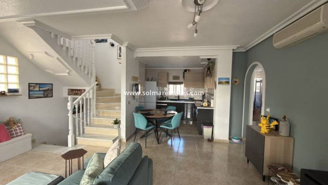 Cette impressionnante villa à El Galan, Villamartín, est située sur un généreux terrain de 500 m² et offre un espace de vie polyvalent sur trois niveaux , parfait pour les familles ou comme maison de vacances avec hébergement pour les invités.