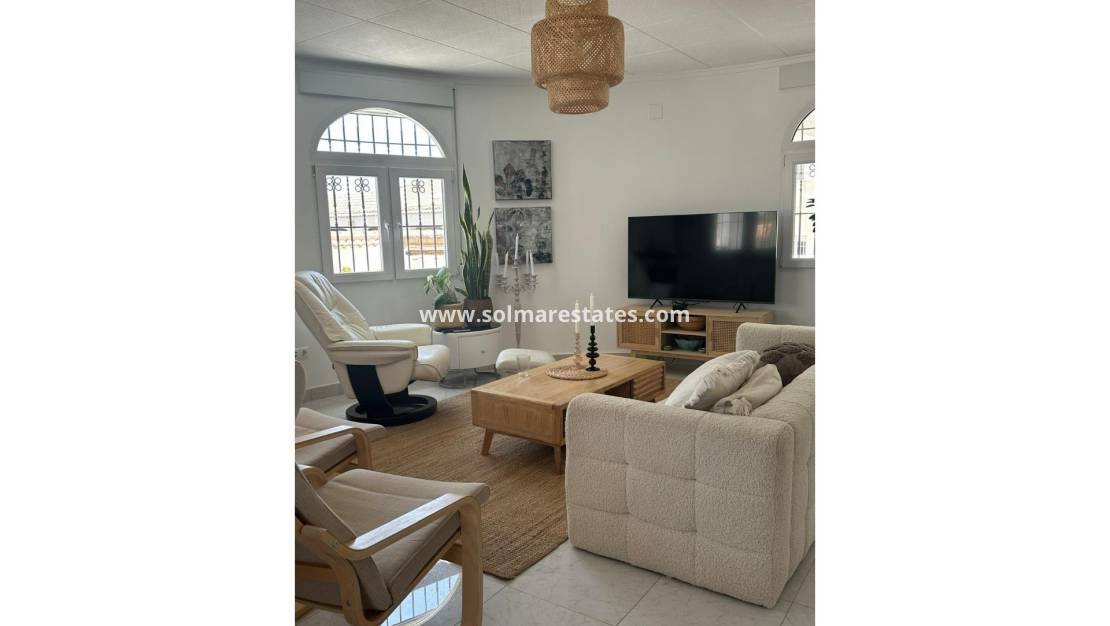 Élégante villa individuelle de 3 chambres et 3 salles de bains, située sur un terrain privé de 800 m² dans le quartier très prisé d'El Chaparral/San Luis. Cette maison magnifiquement rénovée allie un design d'inspiration nordique au charme espagnol classique, offrant un intérieur lumineux et spacieux ainsi que des espaces de vie modulables, parfaits pour la vie de famille ou pour recevoir.