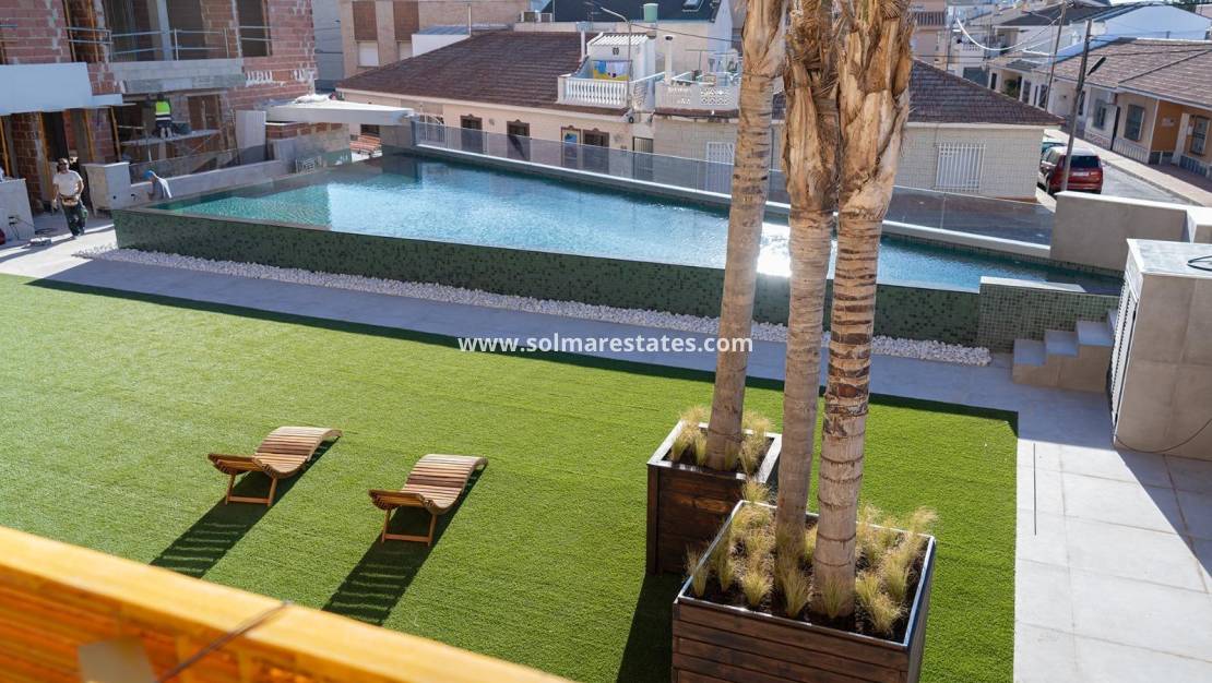 NOUVELLE CONSTRUCTION RÉSIDENTIELLE À SAN PEDRO DEL PINATAR Nouveau complexe résidentiel d'appartements modernes et de penthouses à San Pedro Del Pinatar. Appartements et penthouses avec 2 et 3 chambres à coucher, 2 salles de bains, avec cuisine ouverte entièrement équipée avec des produits blancs - Bosch ou Siemens, espace de vie, grandes terrasses, armoires encastrées, salles de bains entièrement équipées avec chauffage au sol, climatisation, volets électriques, rangement fermé, place de parking avec prise 16 Amp pour les voitures électriques. Magnifique jardin commun avec gazon artificiel et piscine à débordement avec pompe à chaleur. La situation privilégiée de San Pedro del Pinatar sur la Mar Menor et le littoral méditerranéen attire les amateurs de voile et de sports nautiques, avec un port de plaisance et des clubs de voile, tandis que les plages et les bains de boue naturels attirent ceux qui recherchent le soleil, la mer et le sable en toute sécurité. San Pedro del Pinatar dispose d'une communauté bien établie et offre une excellente gamme d'activités, notamment une piscine couverte et des installations sportives, ainsi qu'un programme d'activités sociales tout au long de l'année grâce à un climat hivernal agréable. Les bienfaits des bains de boue, typiques de la région, ou les eaux calmes de la Mar Menor, ont favorisé la croissance de Lo Pagán, qui dispose actuellement de toutes sortes de commodités. De plus, il bénéficie d'un excellent emplacement, à seulement 5 minutes du centre commercial Dos Mares. L'aéroport de Murcia/Corvera se trouve à 30 minutes et celui d'Alicante à une heure de route.
