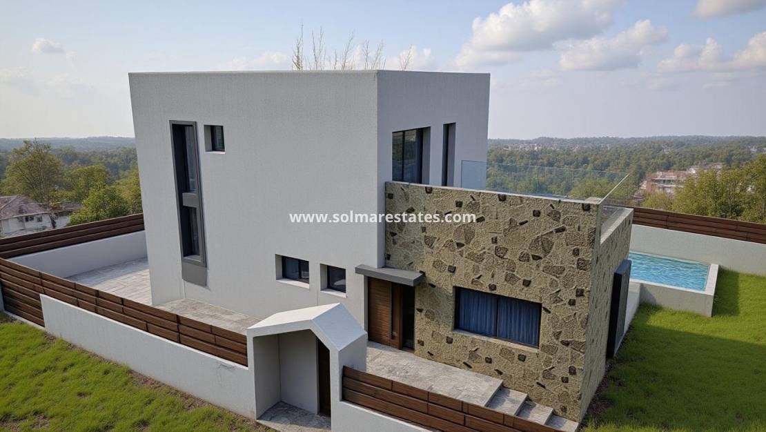 Villa moderne neuve avec vue dégagée à Ciudad de las Comunicaciones, San Miguel de Salinas Villa contemporaine indépendante entourée par la nature Cette élégante villa neuve est située à Ciudad de las Comunicaciones, un quartier résidentiel calme de San Miguel de Salinas, connu pour sa position surélevée, ses paysages dégagés et son environnement paisible. Située à la lisière de l'urbanisation, la propriété bénéficie d'une vue imprenable sur les orangeraies et la campagne environnante, offrant intimité et un véritable style de vie méditerranéen. Construite sur un terrain généreux de 533 m2, la villa offre une surface construite de 169 m2 répartie sur deux étages, conçue pour maximiser la lumière naturelle, le confort et la fonctionnalité. L'espace extérieur comprend un parking privé dans le terrain et une piscine privée, parfaite pour profiter du climat de la Costa Blanca toute l'année. Aménagement bien pensé pour un confort de vie optimal Le rez-de-chaussée comprend un salon et une salle à manger lumineux et ouverts, reliés à une cuisine moderne avec accès direct à la terrasse et à la piscine. Ce niveau comprend également une chambre spacieuse avec salle de bains et dressing, des toilettes pour invités et une buanderie séparée. À l'étage supérieur, trois chambres supplémentaires, une salle de bains complète et deux terrasses privées avec vue panoramique sur les orangeraies créent des espaces paisibles pour se détendre et profiter du cadre. Caractéristiques de qualité et efficacité énergétique La villa est équipée de caractéristiques conçues pour le confort et l'efficacité, notamment Préinstallation pour la climatisation canalisée au rez-de-chaussée Préinstallation pour les unités de climatisation split à l'étage supérieur Panneaux solaires photovoltaïques de 3,5 kW Cuisine équipée Piscine privée Système d'interphone vidéo Garde-corps en verre sur les terrasses de l'étage supérieur Ces éléments allient un design moderne à un mode de vie durable. Emplacement privilégié à proximité du golf, des plages et des services Ciudad de las Comunicaciones offre un cadre résidentiel tranquille tout en restant proche des services essentiels, des terrains de golf et de la côte. La ville animée de Torrevieja n'est qu'à 7 km et offre des centres commerciaux, des restaurants, un port de plaisance et des plages. Distances par rapport aux principaux points d'intérêt Las Colinas Golf and Country Club 6 km Real Club de Golf Campoamor 8 km Plages d'Orihuela Costa 10 km Zenia Boulevard 12 km Aéroport d'Alicante 55 km Une maison idéale pour y vivre ou investir Cette villa offre une occasion unique d'acquérir une maison moderne et spacieuse dans un cadre naturel privilégié, à proximité des terrains de golf, des plages et de toutes les commodités. Parfaite comme résidence permanente, maison de vacances ou investissement sur la Costa Blanca. Contactez-nous dès aujourd'hui pour obtenir plus d'informations ou pour organiser une visite privée de cette propriété exceptionnelle.