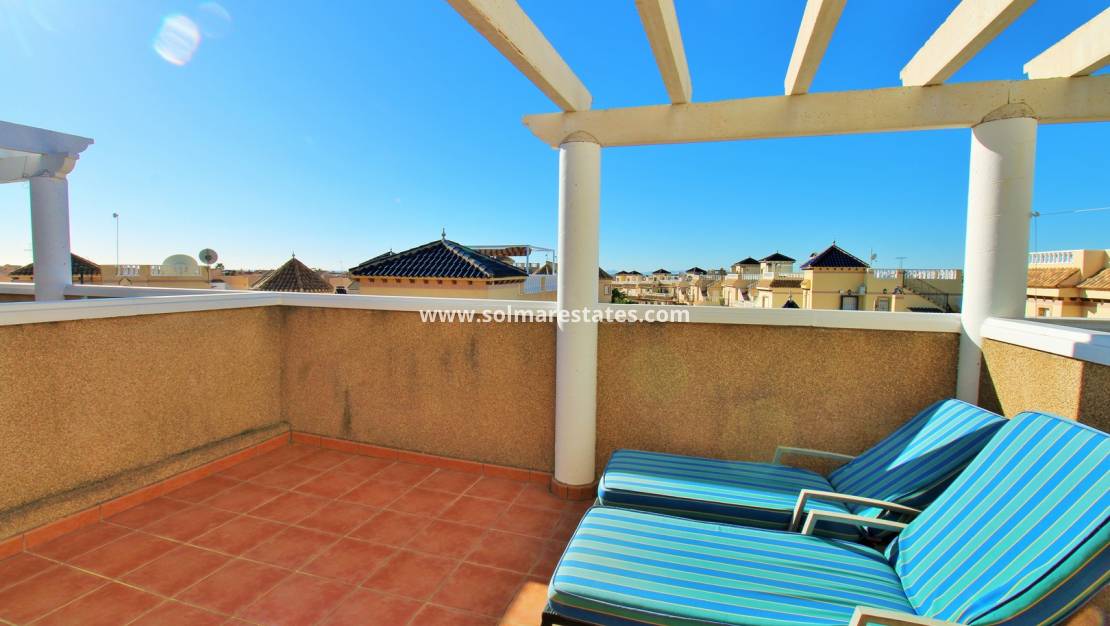Une spacieuse maison de ville de 3 chambres orientée plein sud dans la résidence sécurisée de Paola II, à Playa Flamenca , offrant un excellent espace extérieur, un garage privé avec accès intérieur et un emplacement privilégié à proximité des commodités locales.