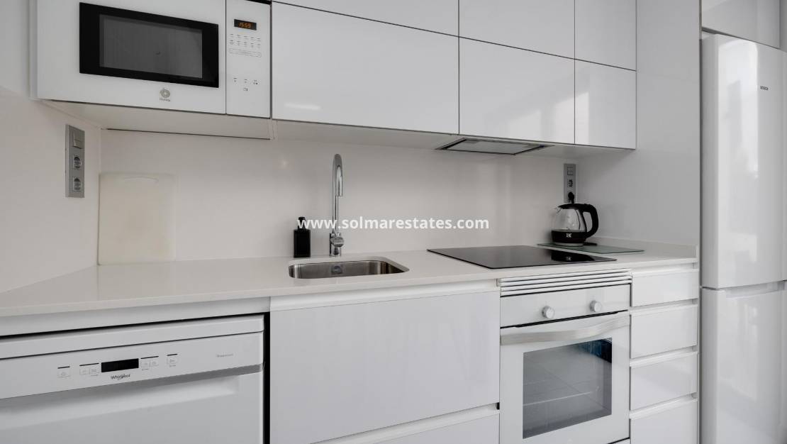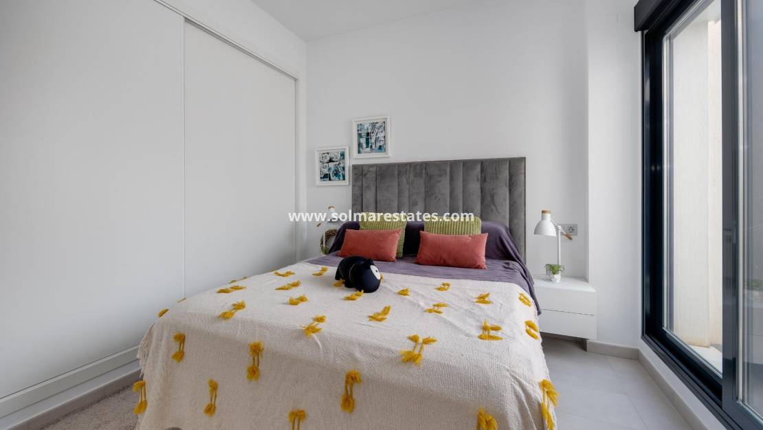 Cette propriété comprend trois chambres spacieuses et deux salles de bains modernes, ainsi qu'un espace de vie lumineux et ouvert, communicant avec une cuisine contemporaine entièrement équipée. De grandes fenêtres inondent l'espace de lumière naturelle et offrent un accès direct au vaste jardin privatif.