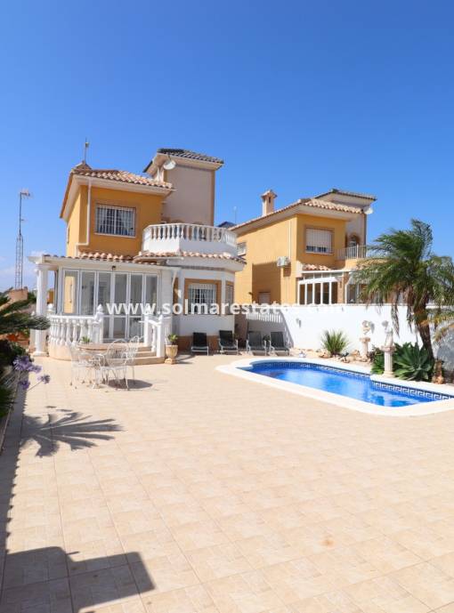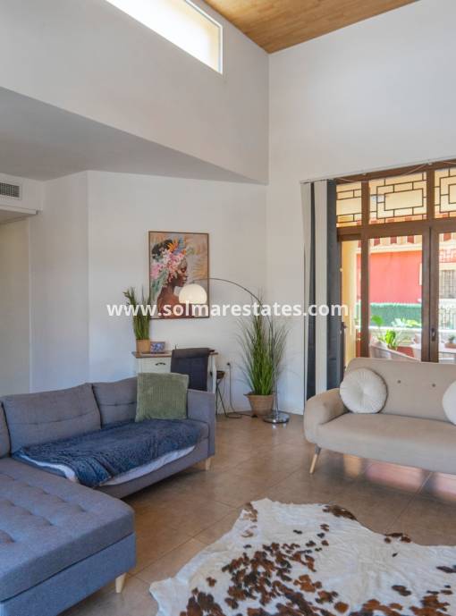 Nous vous présentons une luxueuse villa d'angle à Lo Crispin, Algorfa ! Cette belle maison dispose de 4 chambres, 3 salles de bains et d'un espace de vie spacieux et soigneusement conçu de 212 m2. Dans son intérieur chaleureux, vous trouverez une cuisine bien équipée avec une buanderie séparée et un garde-manger pratique, des salons spacieux et des chambres confortables. L'une des salles de bains dispose d'un jacuzzi et de grandes fenêtres laissent entrer la lumière naturelle dans les pièces. Dans le salon principal, vous trouverez une cheminée, et des radiateurs infrarouges et des climatiseurs sont fournis pour votre confort. La grande terrasse sur le toit vous surprendra par une vue imprenable. La maison est équipée de panneaux solaires, ce qui réduit considérablement le coût de l'électricité, et peut également être utilisée pour alimenter un chargeur de voiture électrique. Le terrain de 811 m2 est agrémenté d'un beau jardin, et dispose également d'une piscine privée et d'un garage. Il est situé dans une communauté fermée. À distance de marche de toutes les commodités, dont un supermarché et de nombreux magasins, bars et restaurants - excellent emplacement.