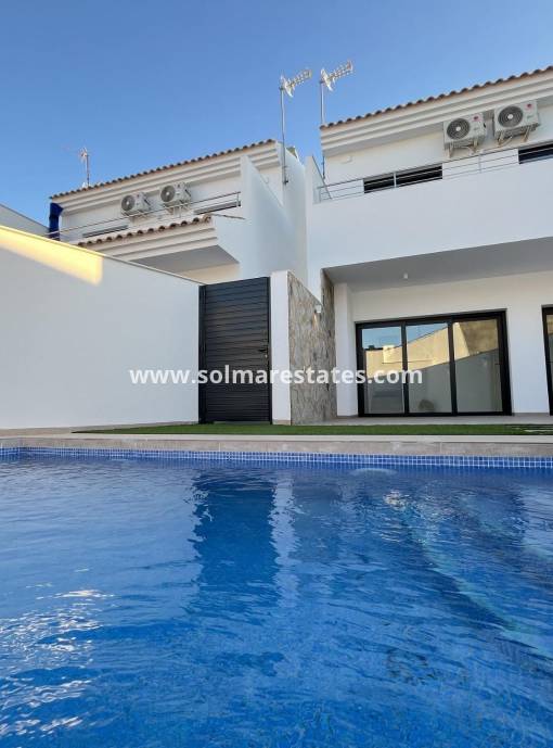 Une opportunité en or ! Villa jumelée moderne de 3 chambres meublée et équipée à vendre à San Pedro del Pinatar, un endroit très recherché dans la région de Murcie sur la Costa Calida.