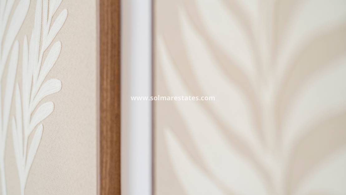 Un escalier extérieur mène du balcon à une vaste terrasse privée sur le toit. Cet espace impressionnant comprend un débarras et un coin barbecue intégré, idéal pour les repas en plein air et les réceptions, tout en offrant une vue imprenable sur les lacs salés de Torrevieja et de La Mata.