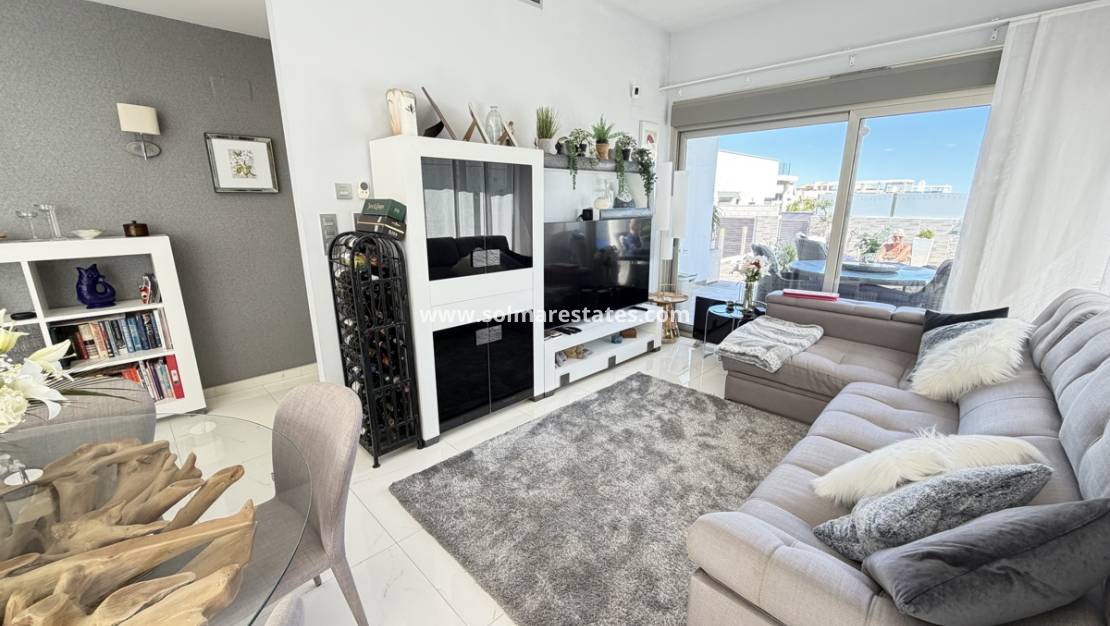 Cette impressionnante villa de plain-pied de trois chambres est située dans le quartier prisé de Pau 26 à Villamartin, sur un terrain d'angle recherché le long d'une route privée, offrant à la fois intimité et un espace extérieur généreux.