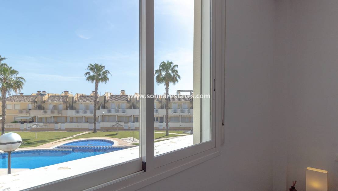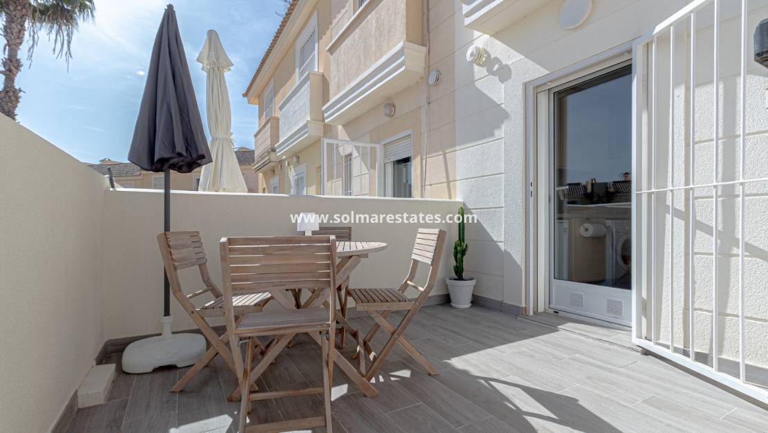 Cette maison de ville à double exposition, magnifiquement présentée, est parfaitement située au sein d'une communauté résidentielle sécurisée et bien entretenue à Lomas de Cabo Roig.