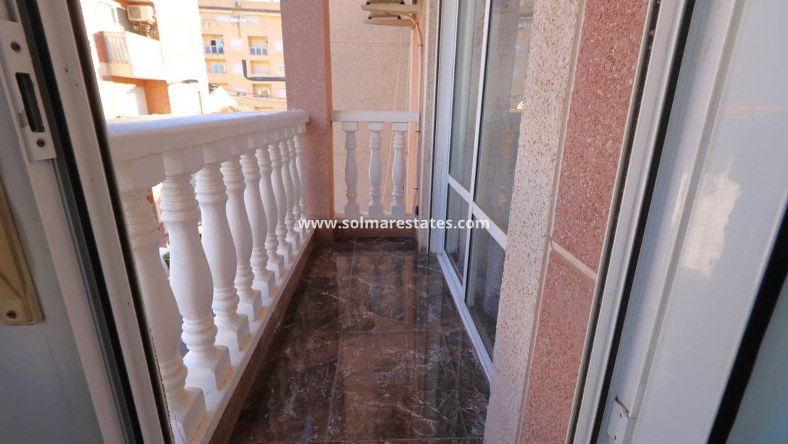 Appartement in Torrevieja Centro, 131 m2 oppervlakte, 1000 m. van het strand, 4 slaapkamers, 2 badkamers, gerenoveerd pand, ingerichte keuken, oostelijk gelegen. ~Extra's: inbouwkasten, balkon, meubilair, patio, terras, bussen, centraal, winkelcentra, kust, supermarkten~