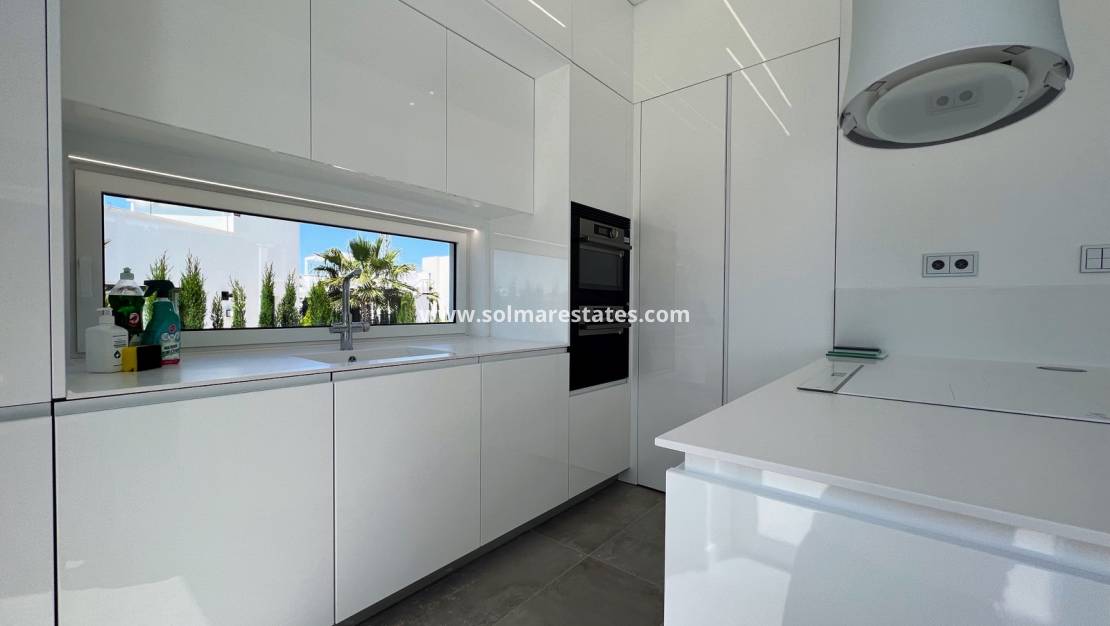 Bij binnenkomst in de Triguero villa vindt u een ruime open keuken, eetgedeelte en woonkamer. Ook een hoofdslaapkamer met en-suite badkamer, een gastentoilet en een trap naar de eerste verdieping. Vanuit de woonkamer en slaapkamer heeft u direct toegang tot het terras.