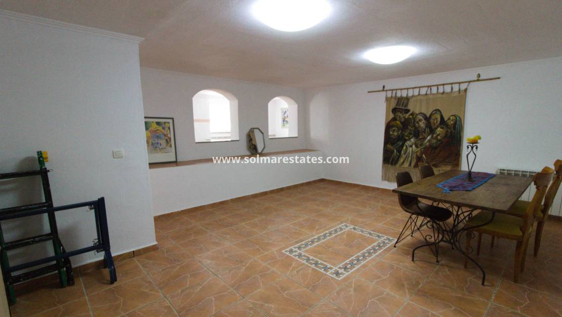 De benedenverdieping, met een eigen ingang, is toegankelijk vanuit de tuin. Hier vindt u een zelfstandig gastenverblijf met een zeer ruime kamer die kan dienen als woon-/eetkamer of als extra slaapgedeelte, een aparte ingerichte keuken met ruimte voor een eettafel, de vijfde slaapkamer en een badkamer met Spaanse tegels en een douche. Deze ruimte is een ideale plek voor familie en vrienden, maar de indeling kan eenvoudig worden aangepast aan de wensen van de nieuwe eigenaren.