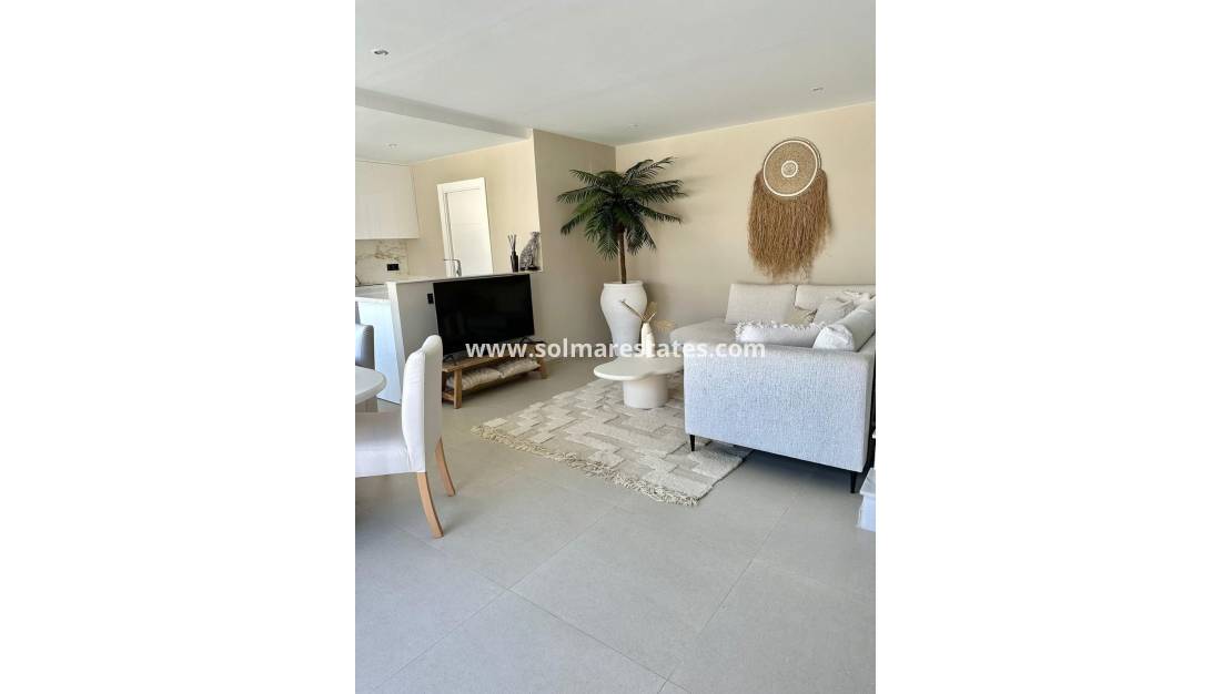 vloerverwarming in de badkamers, luxe tegels, ruim solarium met prachtig uitzicht op de bergen en de kust, luxe keuken met Bosch apparatuur en vaatwasser en luxe werkbladen,