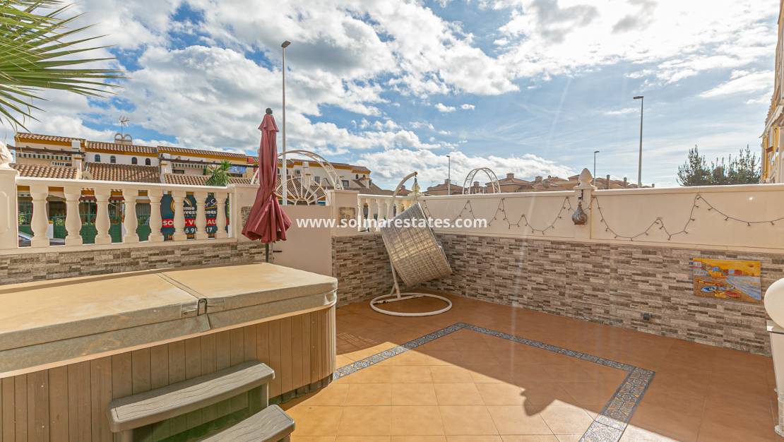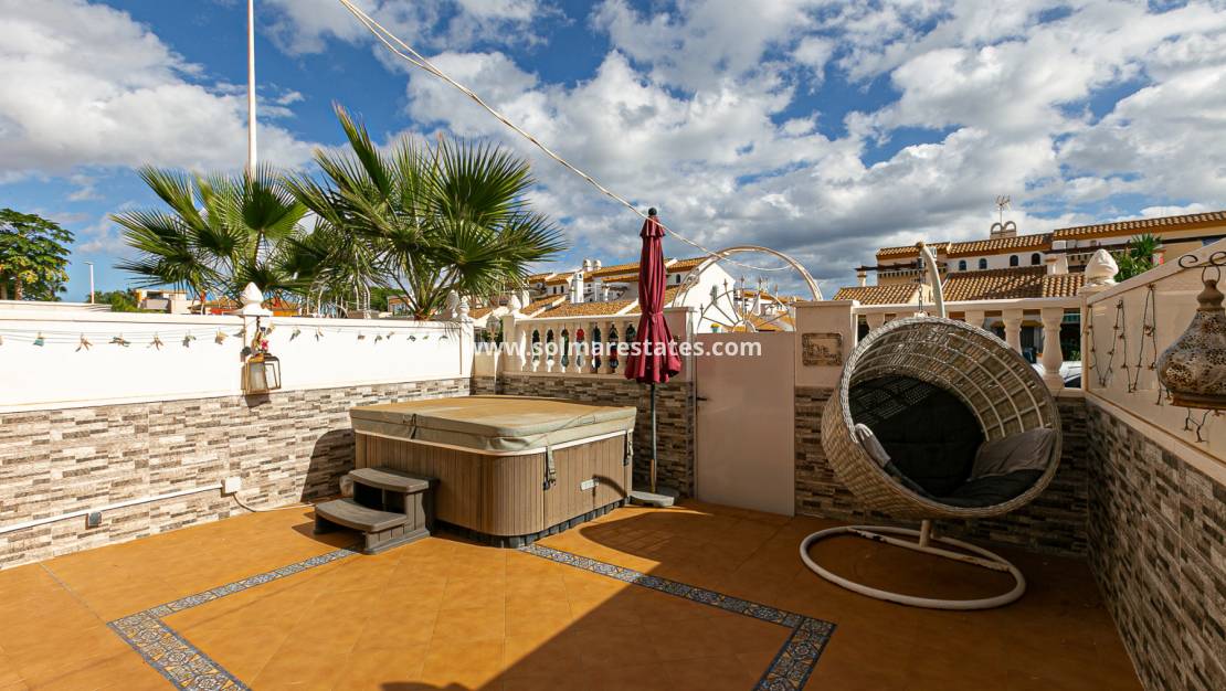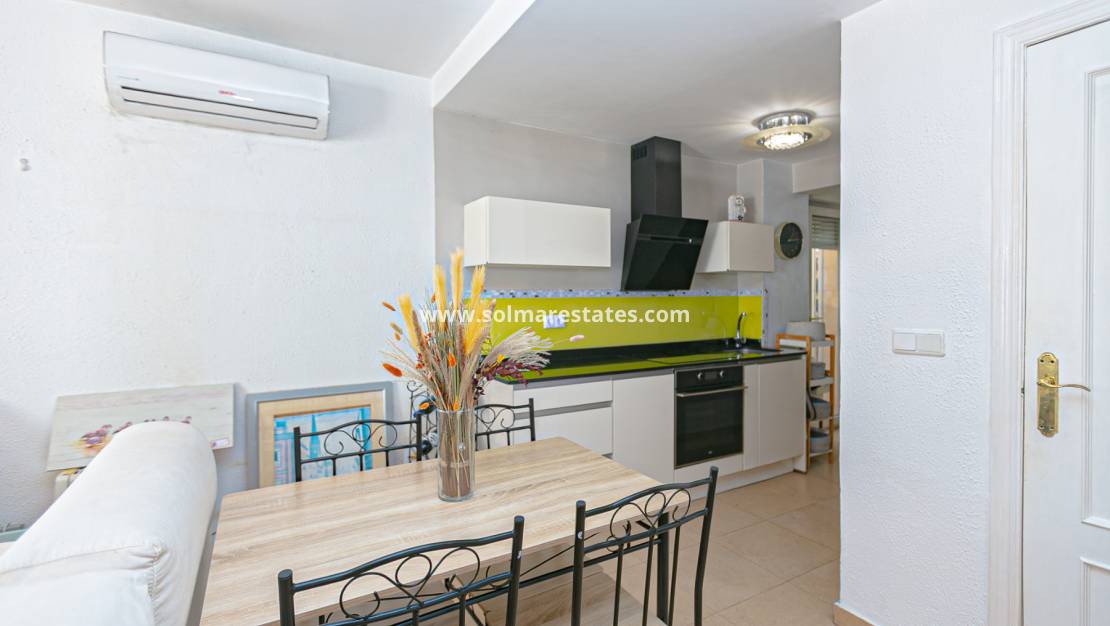 Deze charmante geschakelde woning is gelegen in La Zenia, Orihuela Costa, op slechts 900 meter van het strand, in een van de meest gewilde gebieden van de Costa Blanca. De woning is gedeeltelijk gerenoveerd en beschikt over een uitgebouwde keuken, die zorgt voor een groter gevoel van ruimte en functionaliteit op de begane grond.