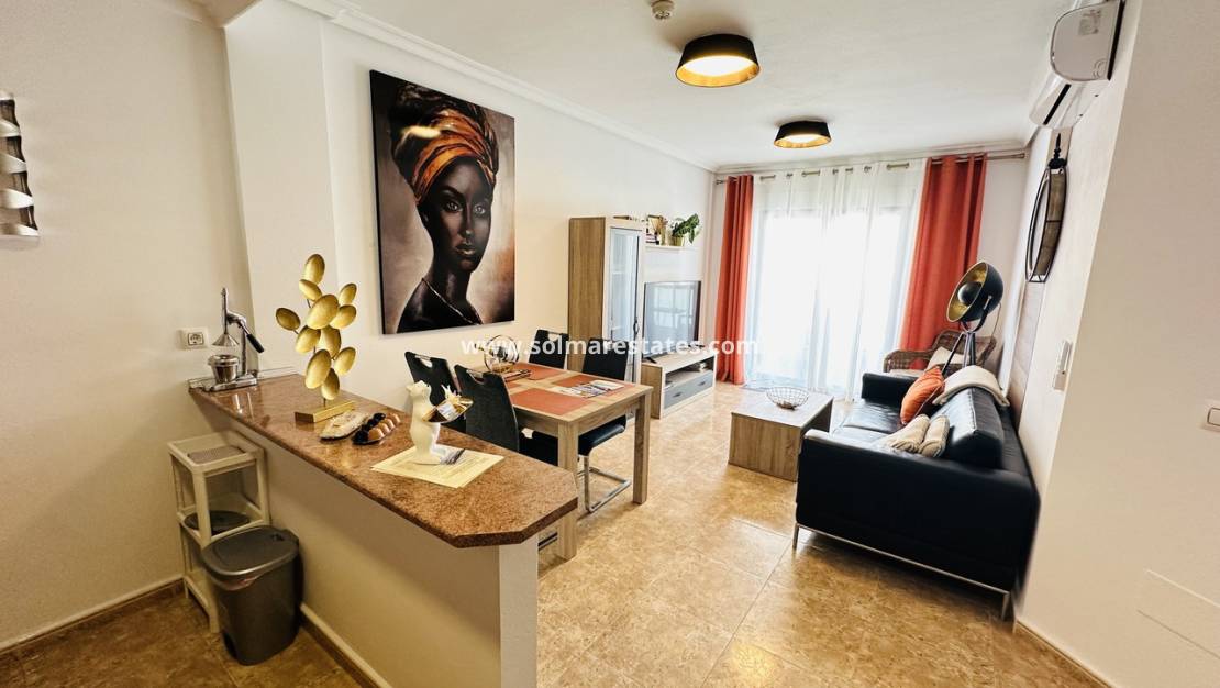 Dit schitterende penthouse met een zuidoostelijke ligging in de gewilde residentie Aguamarina biedt 2 slaapkamers, 1 badkamer en een prachtig uitzicht op zee. Het is ideaal als permanente woning of als uitstekende investeringsmogelijkheid met een hoge huurvraag.