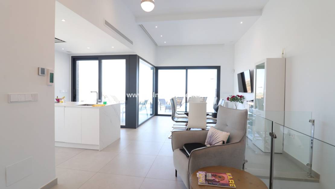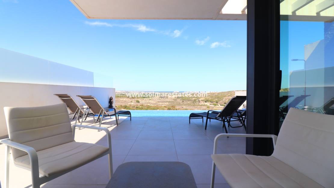 Deze prachtige vrijstaande villa met oostoriëntatie, gebouwd in 2021, is gelegen in de gewilde wijk Pueblo Lucero, vlakbij het prachtige natuurpark Recorral. De villa is ontworpen voor een luxueuze levensstijl en biedt een adembenemend, ononderbroken uitzicht op het landschap en de zee vanaf het terras en het privé-infinityzwembad.