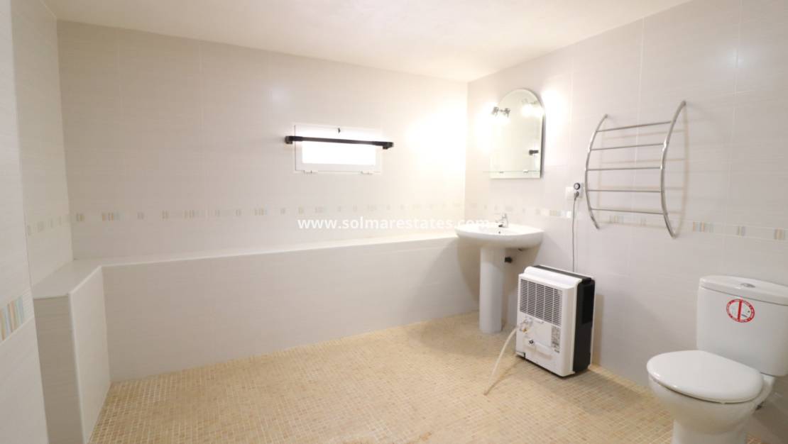 Op de begane grond bevinden zich drie tweepersoonsslaapkamers met ingebouwde kasten, een familiebadkamer met douche en een hoofdslaapkamer met eigen badkamer. De onderbouw, met onafhankelijke externe toegang, is ideaal voor gasten of een uitgebreide familie en beschikt over twee extra tweepersoonsslaapkamers, een natte ruimte en een ruime woon-/eetkamer.
