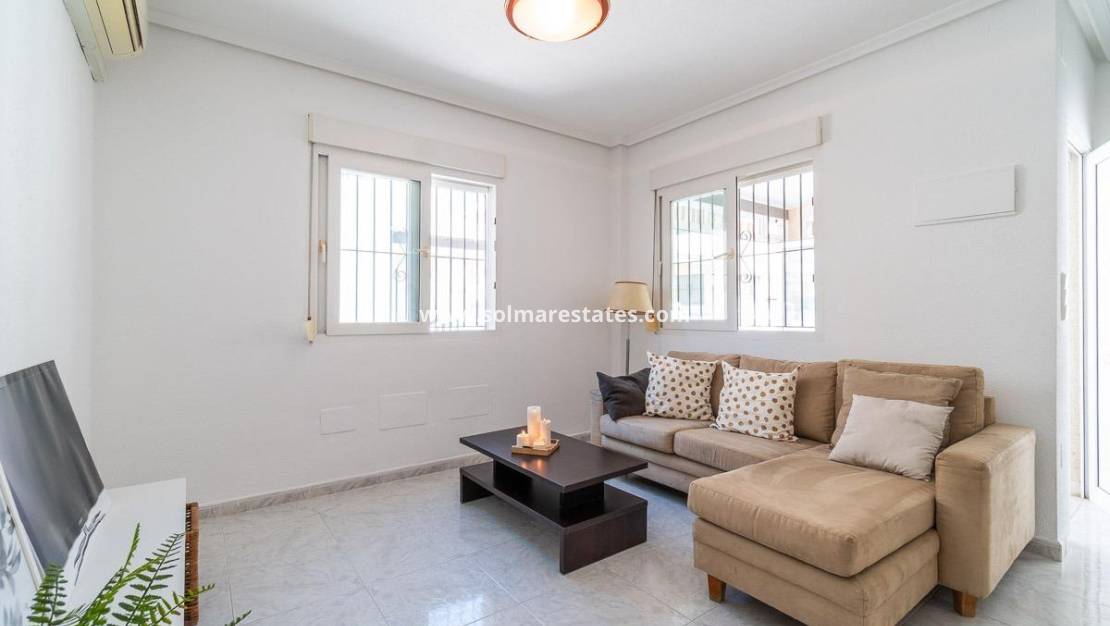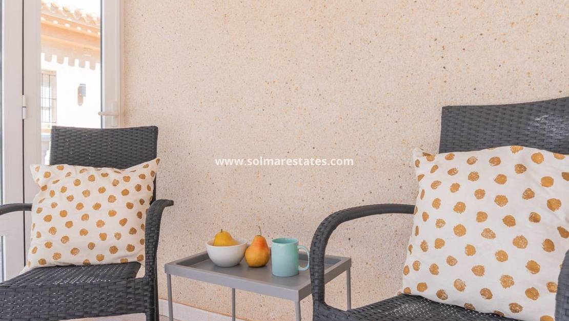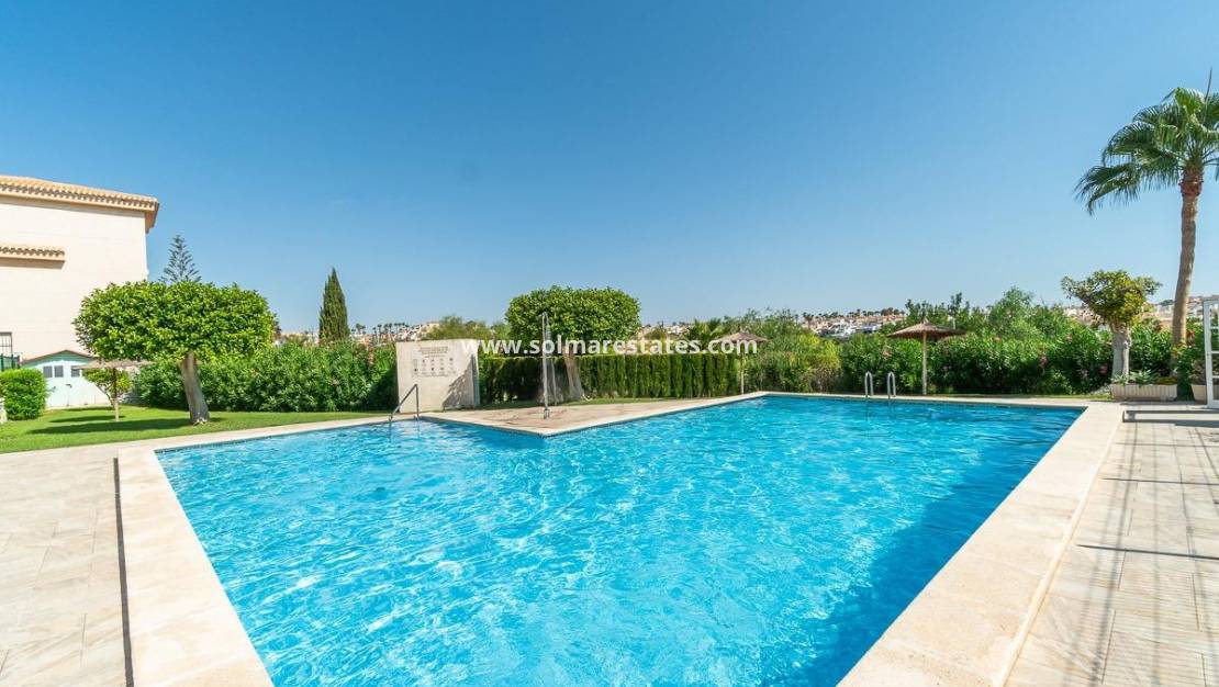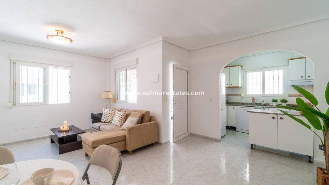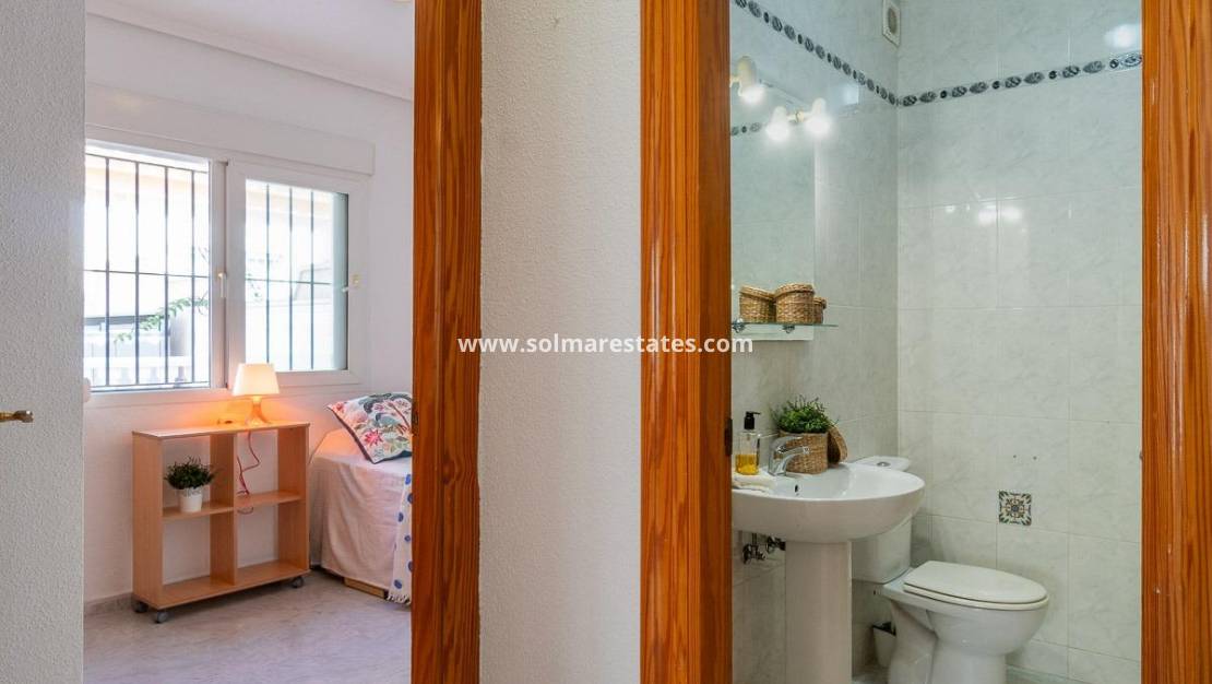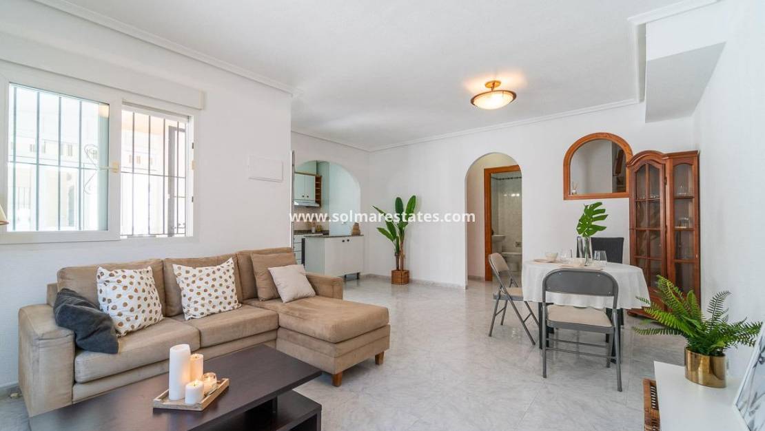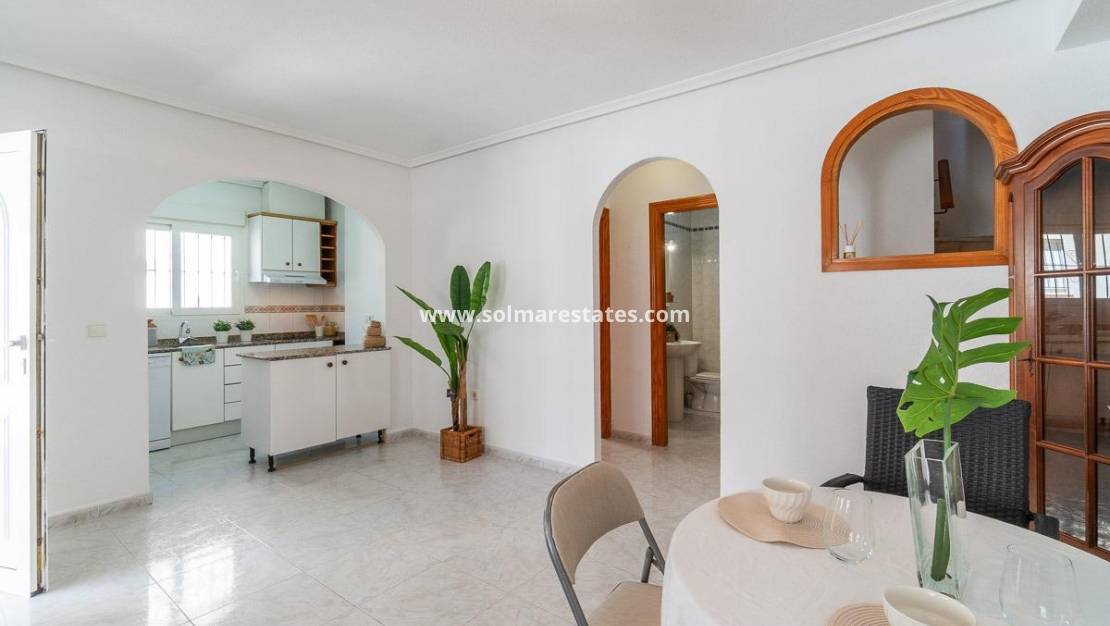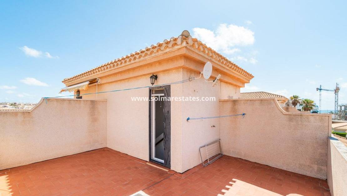 Ruime twee-onder-een-kapwoning met vier hoeken, in een wooncomplex met gemeenschappelijk zwembad in het centrum van Playa Flamenca. ~ Zeer dicht bij sport- en recreatiegebieden, het winkelcentrum Zenia Boulevard en andere winkelgebieden, op korte loopafstand van de stranden van Playa Flamenca en de lokale openbare scholen, de zaterdagmarkt en bars en restaurants, maar toch in een rustig, afgesloten complex met gemeenschappelijk zwembad en tuinen, privéstraten die alleen door bewoners worden gebruikt en parkeerplaatsen aan de voet van de woningen, zodat uw gezin, koffers en andere spullen gemakkelijk vanuit uw auto in slechts een paar stappen bij uw woning kunnen komen. ~ ~ De woning beschikt over een betegeld hoekterras met plantenbakken en voldoende ruimte voor een barbecue, leeshoek, chill-outruimte of hoe u de ruimte van meer dan 30 m² ook wilt gebruiken. Er is ook een aluminium opbergruimte voor koffers, gereedschap en meer. ~ De entree van de woning is voorzien van een aluminium en glazen omheining, waardoor deze dankzij de onovertroffen zuid-zuidwestelijke oriëntatie van de woning perfect te gebruiken is als winterkamer. Dit garandeert het hele jaar door zon. In de winter kunt u met de eerder genoemde overkapping genieten van een warme ruimte die ook de rest van het huis verwarmt. In de zomer kunnen alle glazen ramen worden geopend om frisse lucht binnen te laten. ~~~Het huis heeft drie slaapkamers, één slaapkamer op de begane grond en een badkamer met douche op dezelfde verdieping. Dit betekent dat als er een oudere persoon met beperkte mobiliteit of iemand met een handicap is, deze geen trappen hoeft te beklimmen, waardoor het een zeer handige indeling is voor alle soorten gezinnen. ~~~De beschrijving begint met binnenkomst via de eerder genoemde glazen veranda via de beveiligde ingang naar de L-vormige woon-/eetkamer met grote ramen om de ruimte te maximaliseren, waardoor er veel licht en zonlicht op de hele begane grond valt. De woonkamer biedt ruimte aan een leeshoek, een tv-hoek en een eethoek, evenals een open keuken met ontbijtbar, uitgerust met kasten en apparatuur. Op dezelfde begane grond is er een badkamer met douche die gebruikt kan worden op de hele verdieping, evenals een ruime berging onder de trap voor het opbergen van alle huishoudelijke artikelen die niet in de eerder genoemde berging op het buitenterras pasten.~~Op de eerste verdieping zijn er twee slaapkamers, beide met ingebouwde kasten, één met een ontbijtbalkon en een complete badkamer, plus een wasruimte met wasmachine en een elektrische boiler van 80 liter.~~Op het dak van het pand hebben we een solarium van 30 vierkante meter met vrij uitzicht en ruimte om te ontspannen, te lezen of gewoon te genieten van de zon en het vrije uitzicht.~~Het pand is onlangs geschilderd en gedecoreerd, en zodra het is ingericht, kunt u er meteen van genieten.~~Het is de moeite waard om het pand te bezichtigen om de vele mogelijkheden te bekijken, dankzij de zonnige ligging, de zeer rustige ligging, de gemakkelijke parkeergelegenheid en het feit dat het in perfecte staat is en direct instapklaar.