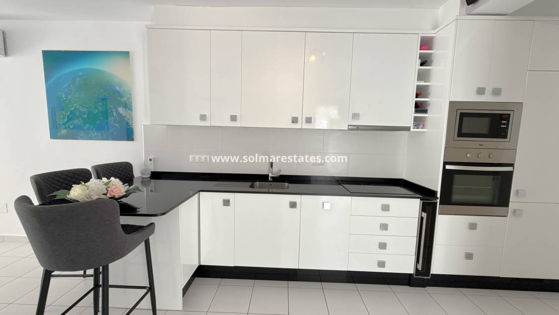 Deze prachtig gerenoveerde villa ligt op slechts 400 meter van het bekroonde Blauwe Vlag-strand van La Zenia, een van de meest gewilde gebieden aan de Costa Blanca. Elk detail van deze woning is zorgvuldig gerenoveerd en biedt de perfecte mix van modern comfort en kustcharme.